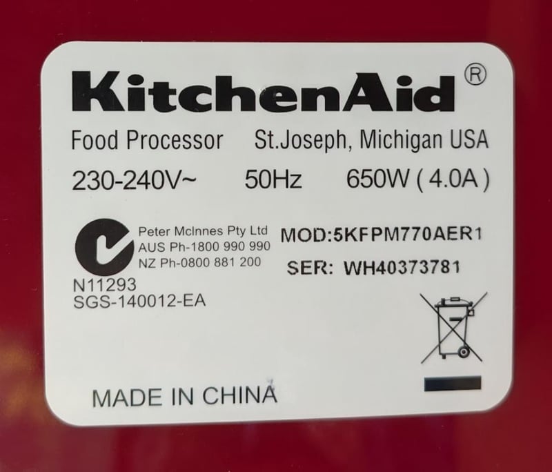 KitchenAid multi function food processor model 5KFPM770AER1 - 650 watts 58X30X30cm
