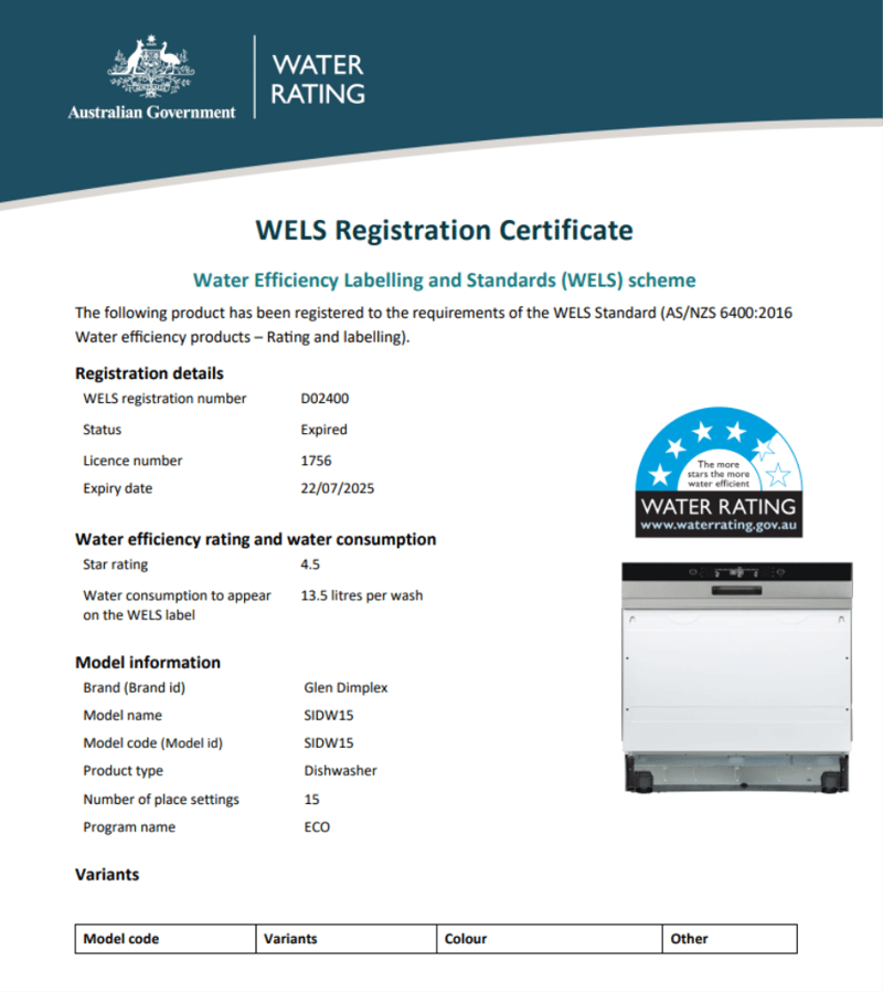 RRP$1,299 Dishwasher, GlenDimplex, 60cm Semi Integrated Dishwasher