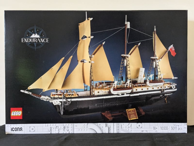 Lego Icons Endurance Sailing Ship Model (Set 10335) Featuring 3,011 Pieces With Cream Canvas Sails, Detailed Wooden Hull Construction, And Authentic Rigging. Includes Display Stand And Instruction Manual. Age 18+.