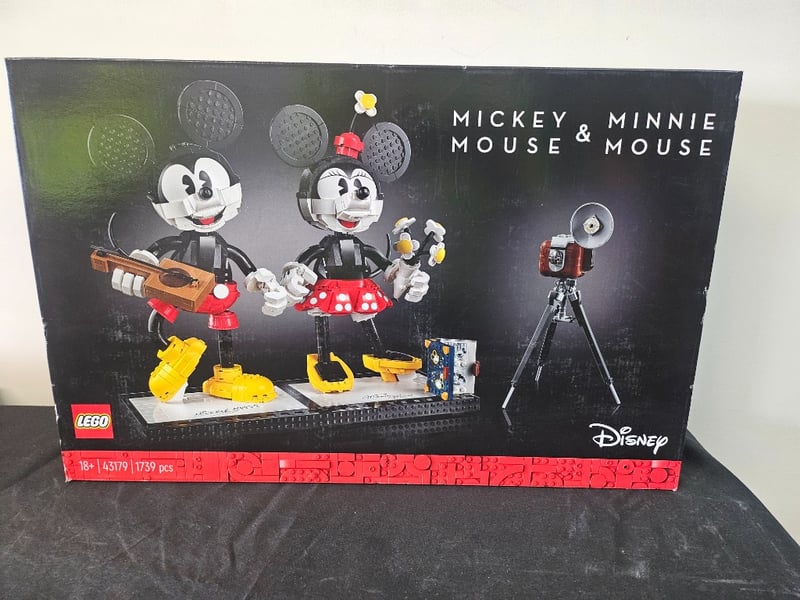 LEGO DISNEY MICKEY MOUSE & MINNIE MOUSE SET 43179Lego Disney Collectible Set Featuring Buildable Mickey Mouse And Minnie Mouse Figures With Vintage Film Studio Accessories Including Camera On Tripod, Guitar, Suitcase, And Yellow Film Reels. Set Contains 1,739 Pieces With 18+ Age RecommendationCondition: Good - Refer To Images584532+100