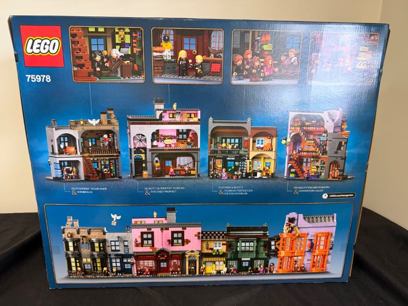 Lego Harry Potter Set 75978 Featuring The Iconic Diagon Alley Street Scene With Five Detailed Building Facades Including Ollivanders Wand Shop, Quality Quidditch Supplies, Flourish & Blotts, And Weasleys' Wizard Wheezes. Includes 16+ Minifigures And Accessories.