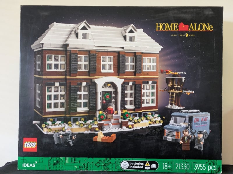 Lego Ideas Set #21330 Featuring The Iconic Mccallister Family Home From Home Alone, Comprising 3,955 Pieces With Detailed Architectural Elements Including Snow-Laden Roof With Dual Dormers, Brick Facade With Shuttered Windows, Illuminated Interior Rooms, Functional Accessories, And Accompanying Minifigures.