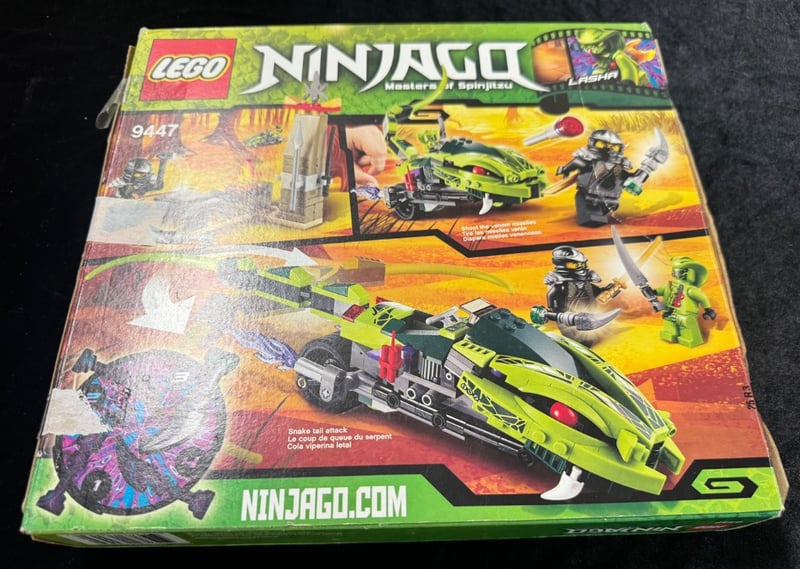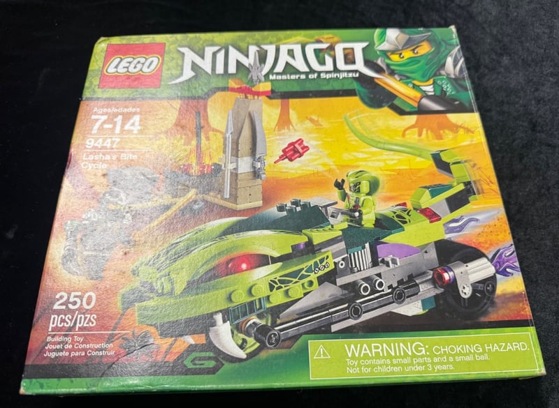 Lego Ninjago Masters Of Spinjitzu Set 9447 Featuring Lasha'S Bite Orb Vehicle With 250 Pieces. Includes Lime-Green And Black Serpent-Themed Craft With Articulated Snake Tail Attack Mechanism, Minifigure Ninja Warrior, And Tower Structure. Ages 7-14