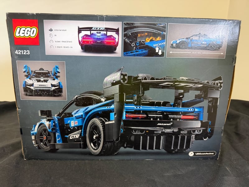 LEGO TECHNIC MCLAREN SENNA GTR SET 42123Lego Technic Mclaren Senna Gtr (Set 42123) Featuring Detailed Blue And White Racing Livery With Functional Mechanical Components Including Opening Doors, Articulated Suspension, And Removable Engine Block. Includes Motorized Pit Crane Accessory With Extendable Boom And Working Winch MechanismCondition: Good - Refer To Images584532+75