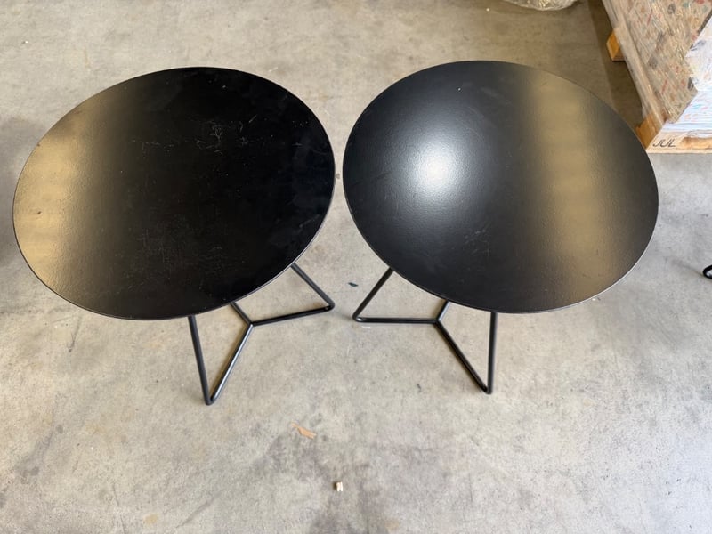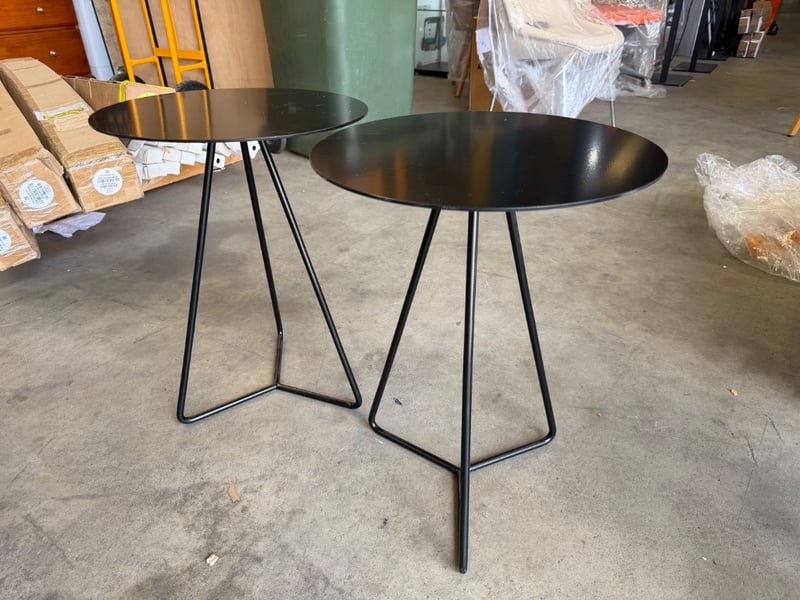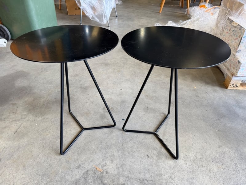 Pair Of Side Tables, Metal Style, Black Finish Dimensions H:54cm W:40cm D:40cm SOLD AS LOT