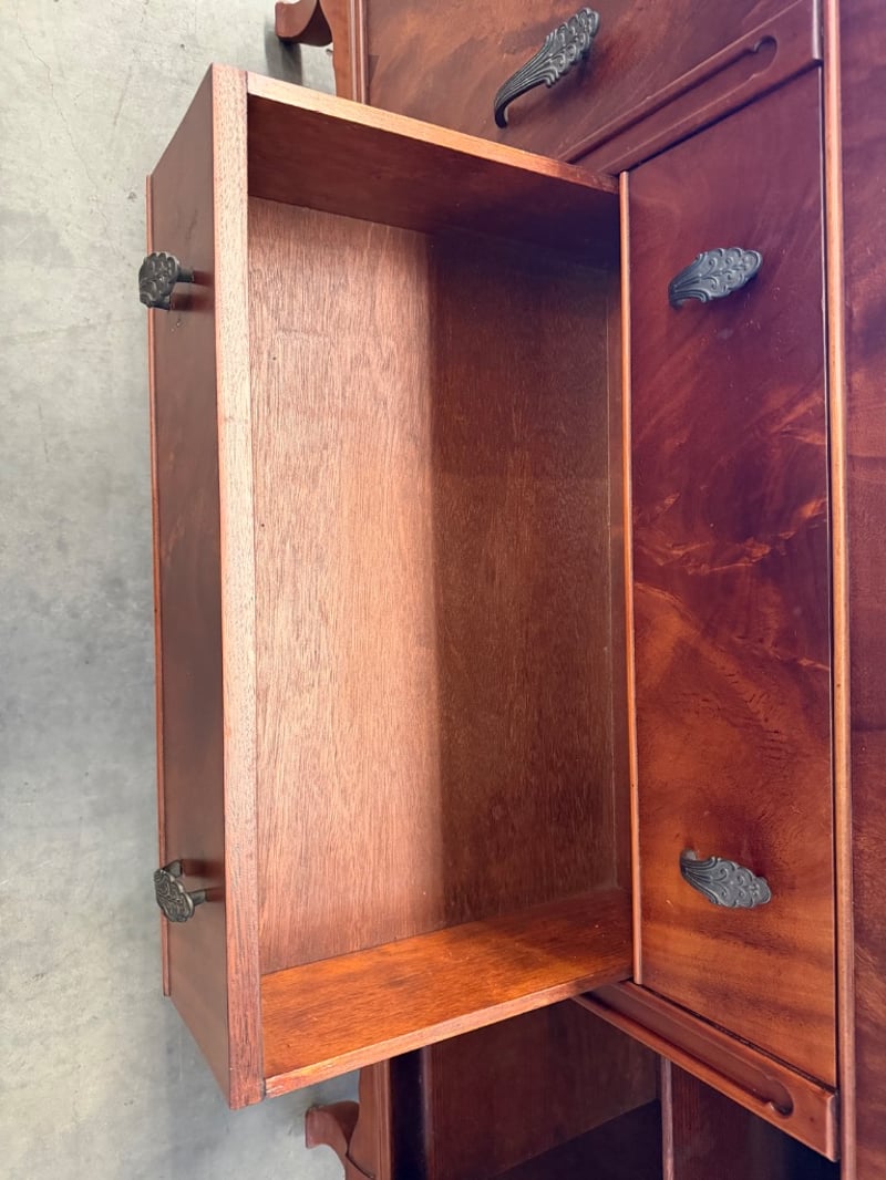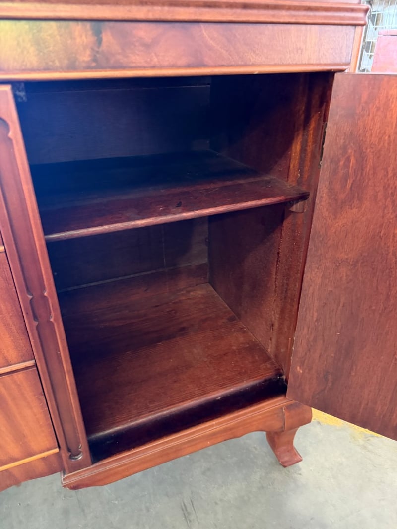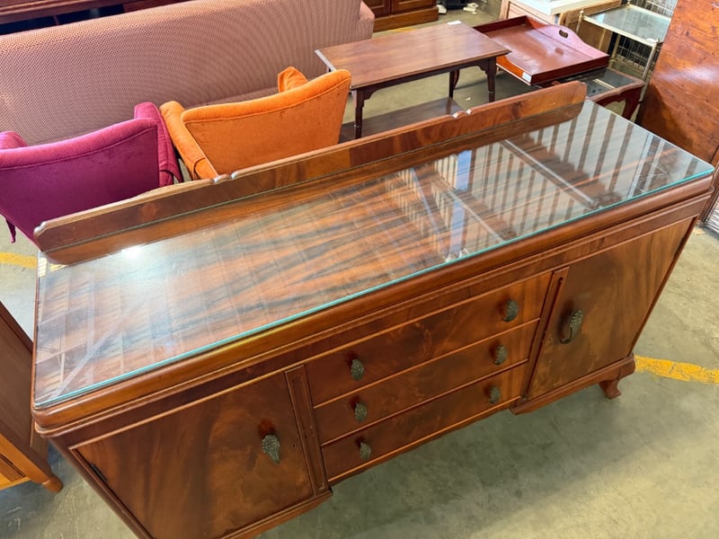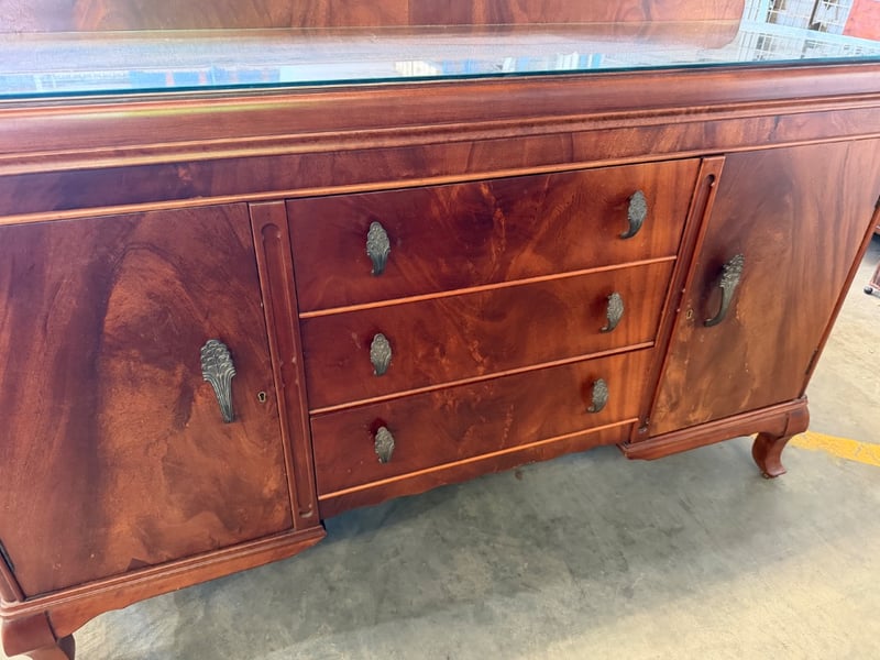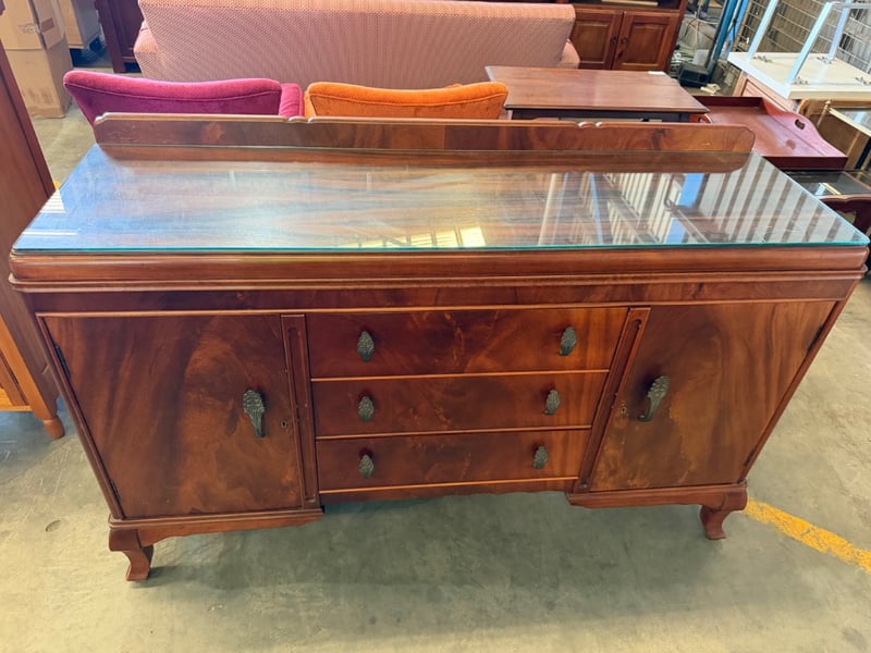 Buffet Bar With Drawers & Glass Top, Keys Included, Timber Style, Brown Finish