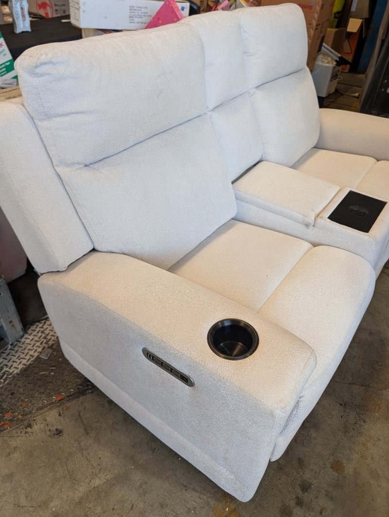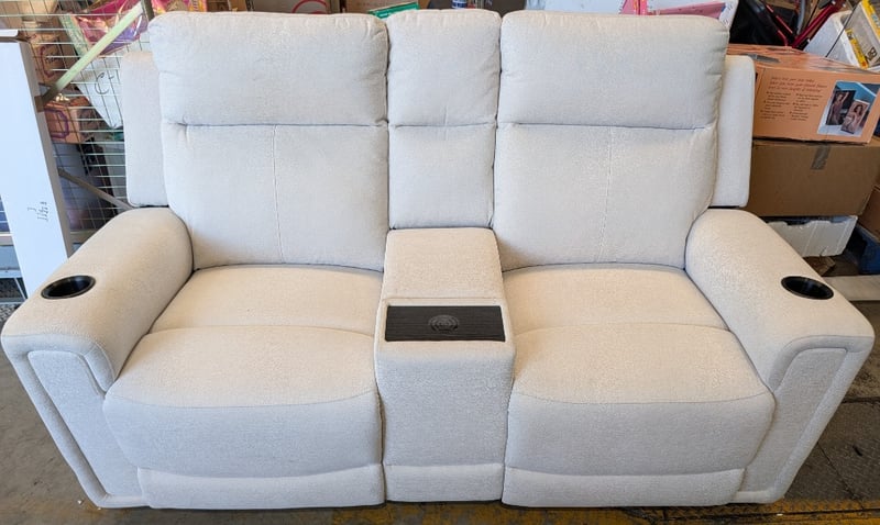 2-Seater Fabric Electric Recliner - White Dimensions Approximately: 180cm(L) X 85cm(D) x 110cm(H) Note: Marks Visible