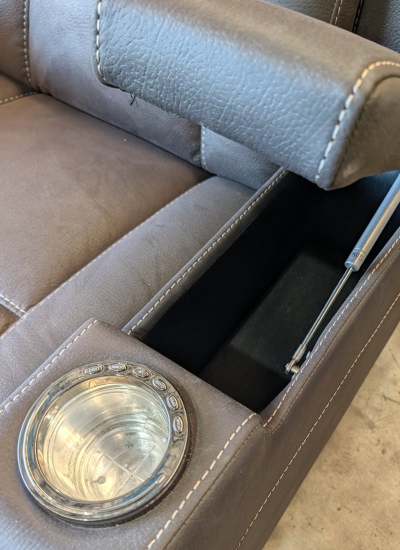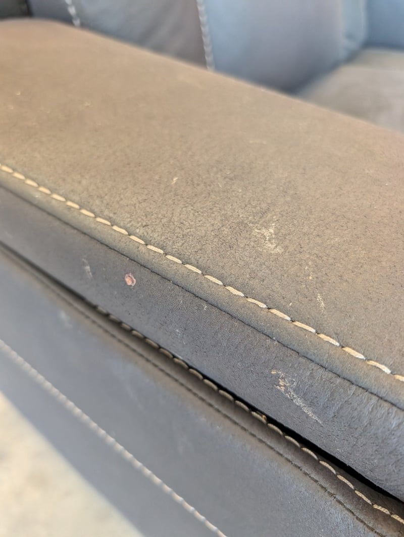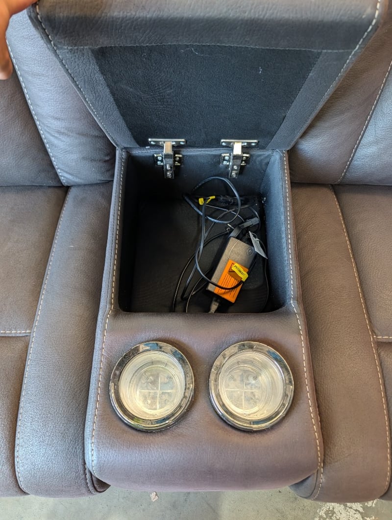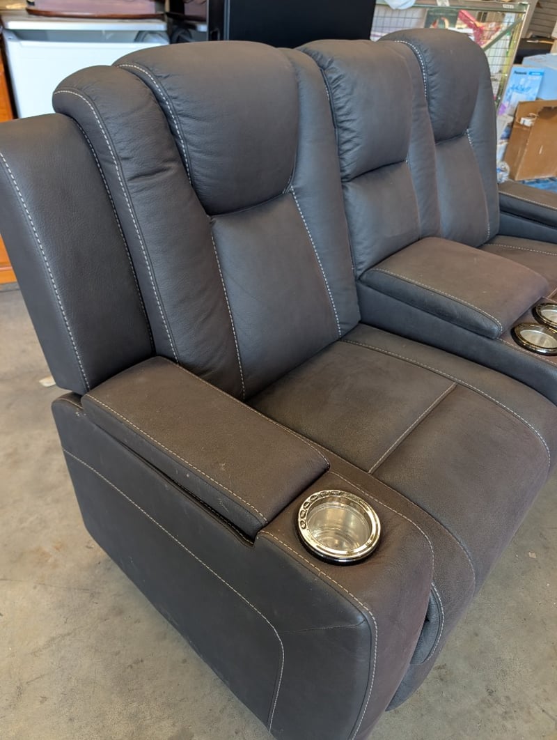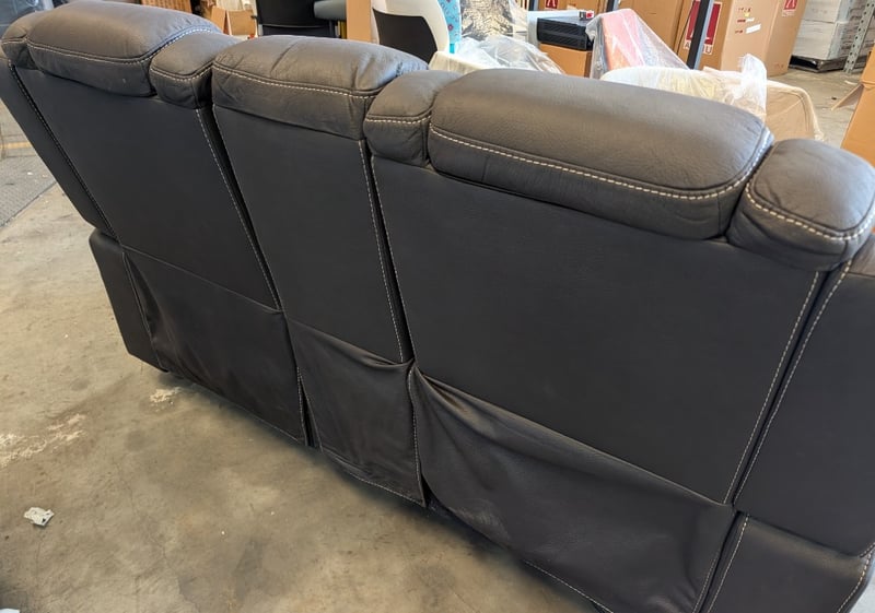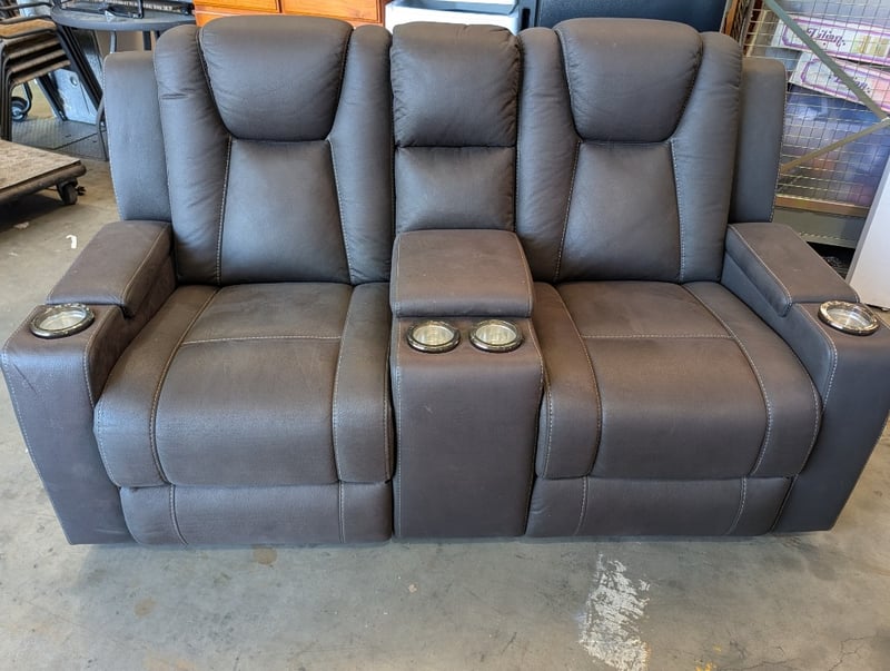 2-Seater Fabric Electric Recliner - Charcoal Dimensions Approximately: 180cm(L) X 85cm(D) x 110cm(H) Note: Arm Hydraulic Mot Attached, Marks and Pet Hair Visible