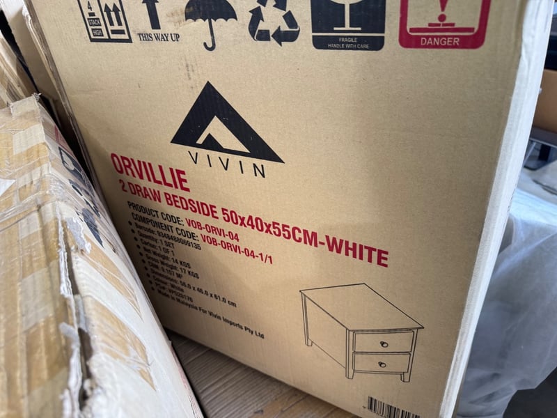 VIVIN Orville 2-Drawer Bedside Table in White. Product code VOB-ORVI-04.