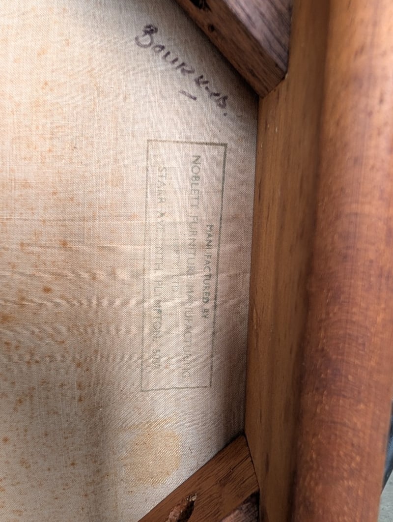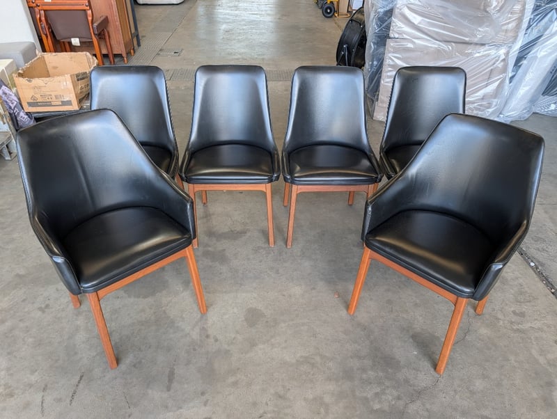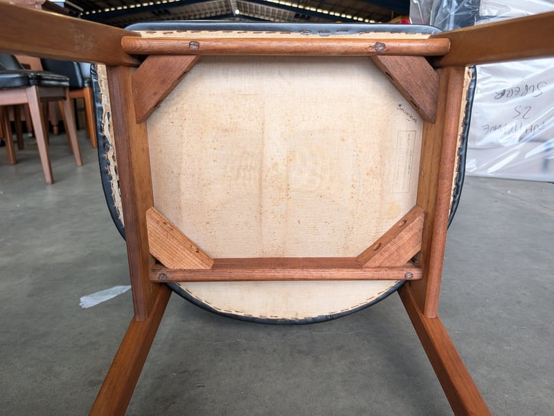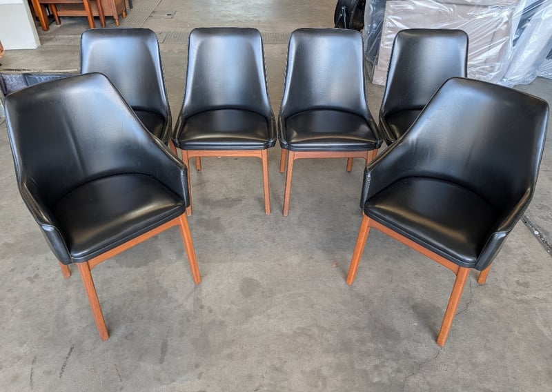 6 x Noblett TD328 Mid-Century Modern Dining Chairs Two Carver Chairs Plus 4 Standard Chairs. Original Noblett Manufacturing Stamp, Made In South Australia. No Rips, Tears Scratches. Underneath Fabric Slightly Discolours Consistent With Age. Dimensions: 53cm(W) X 50cm(D) 88cm(H)