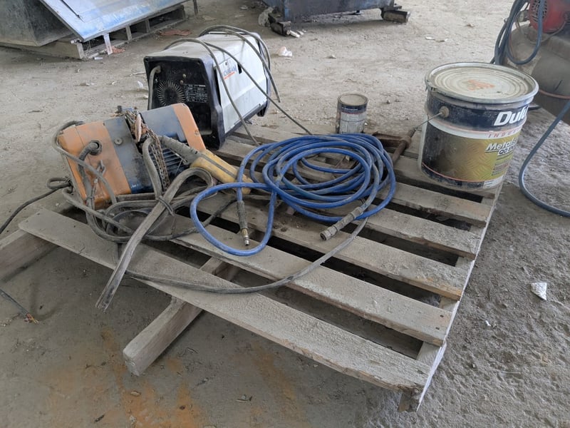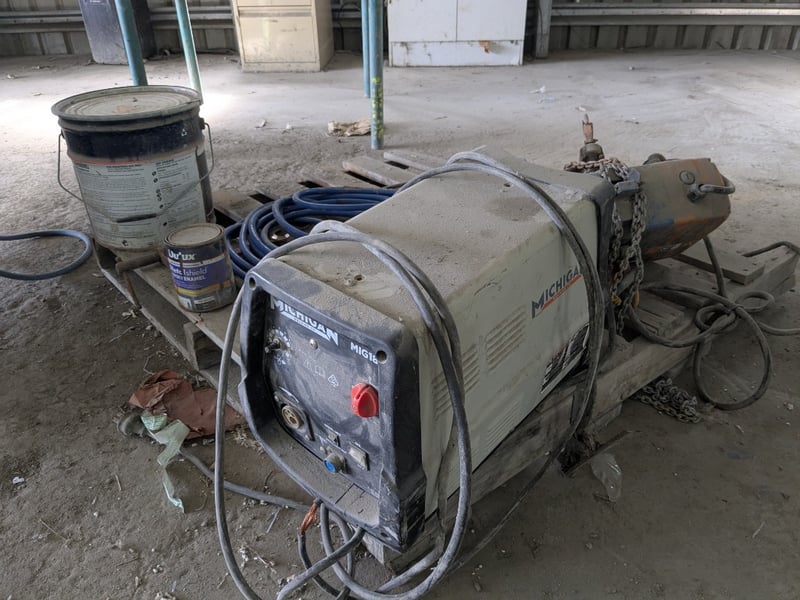 Assorted lot, welder, electric hoist & more
