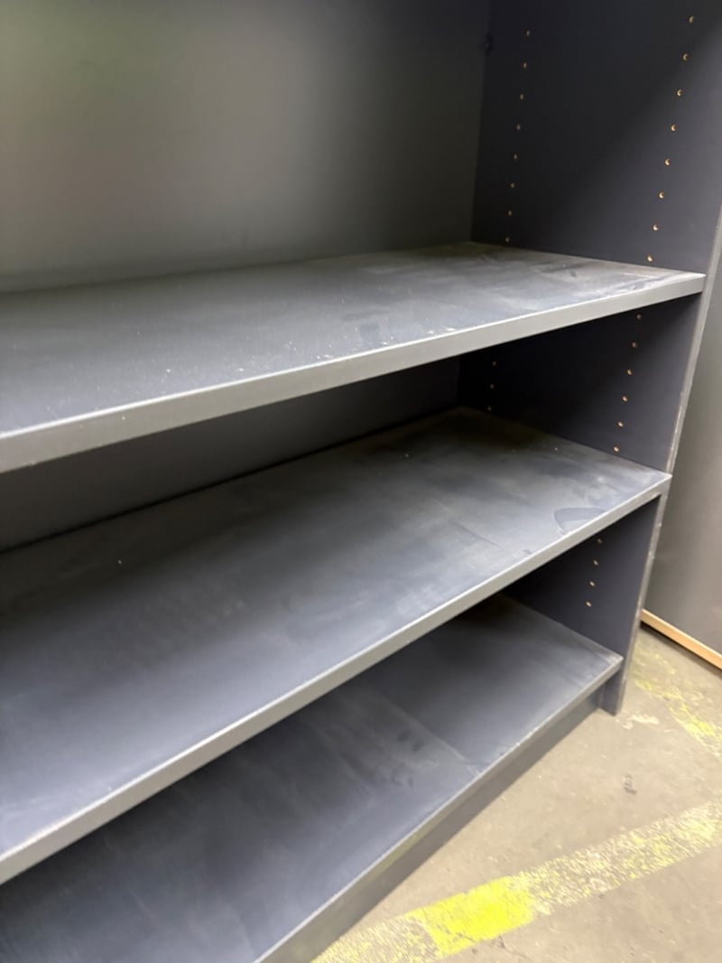 Shelving Unit, Dark Grey Timber Finish with Grey Timber Top2x Adjustable Shelves includedDimensions: H 90cm W 90cm D 35cm