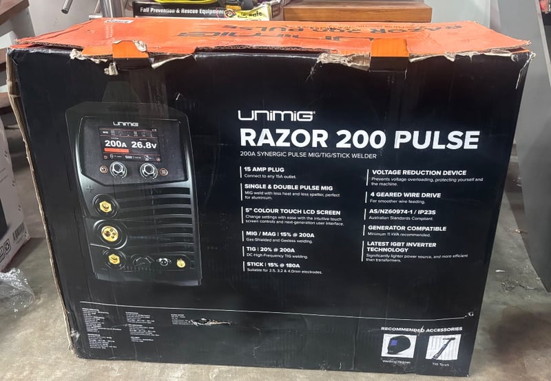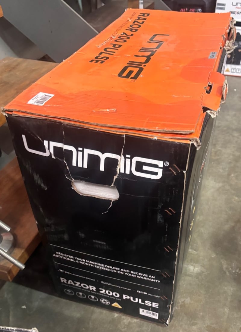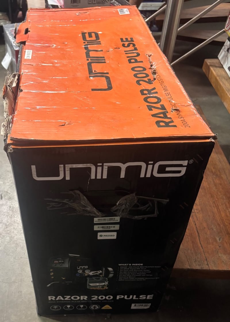 UNIMIG RAZOR 200 PULSE welder, a multi-process machine capable of MIG, TIG, and Stick welding. Note: Untested