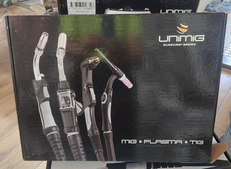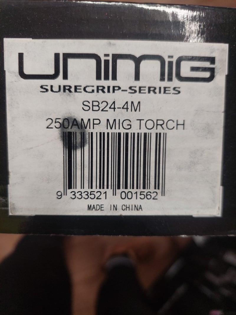 Unimig Suregrip-Series SB24-4M 250AMP MIG Torch. Professional-grade welding torch featuring four-piece component set. Note: untested
