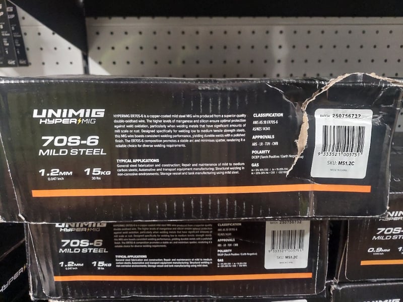 Unimig Hyper MIG 70S-6 mild steel MIG welding wire, 1.2mm diameter, 15kg spool. Copper-coated mid-steel wire.