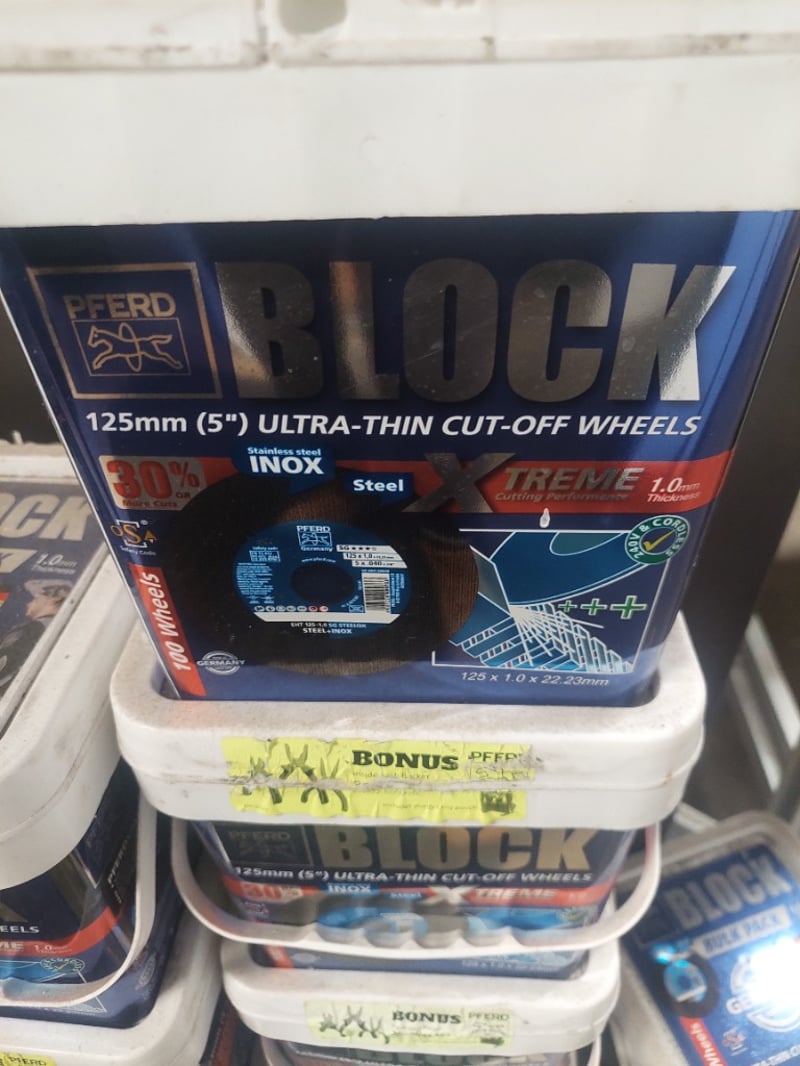 Bulk lot of PFERD BLOCK 125mm (5") ultra-thin cut-off wheels for stainless steel and inox materials. Sold as Lot