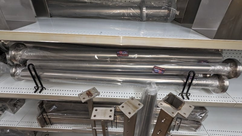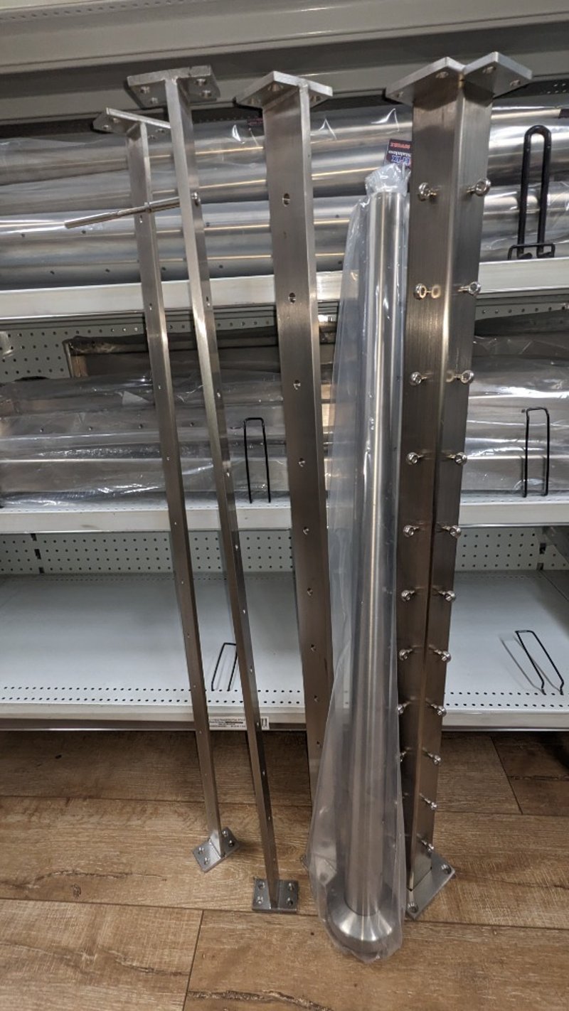 Comprehensive Stainless steel shelving components and hardware, including multiple rectangular balustraded panels in 316 marine-grade stainless steel, polished and more......