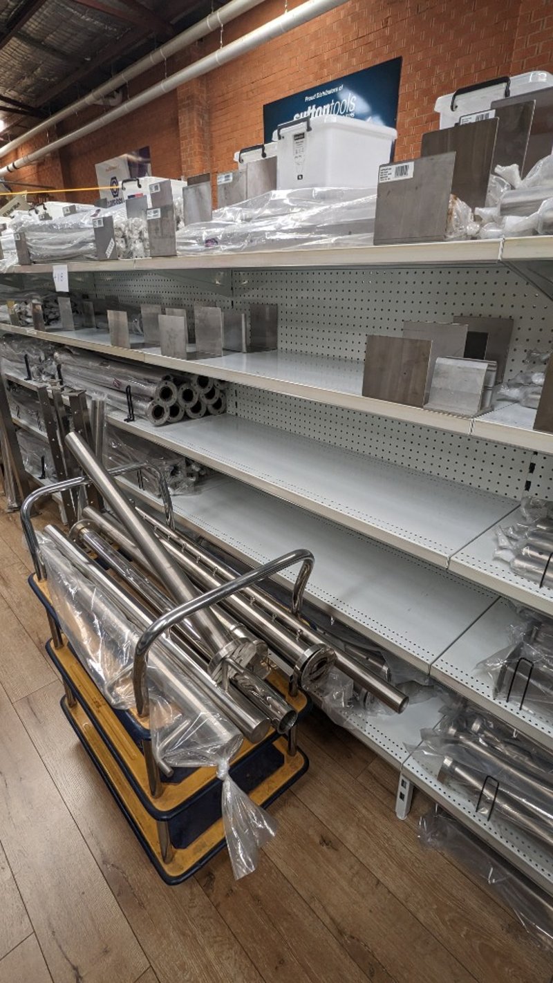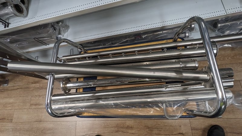 Comprehensive Stainless steel shelving components and hardware, including multiple rectangular balustraded panels in 316 marine-grade stainless steel, polished and more......