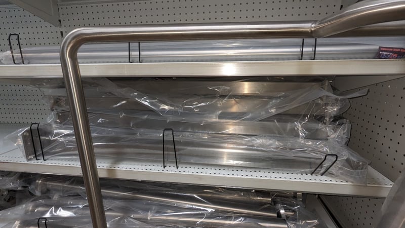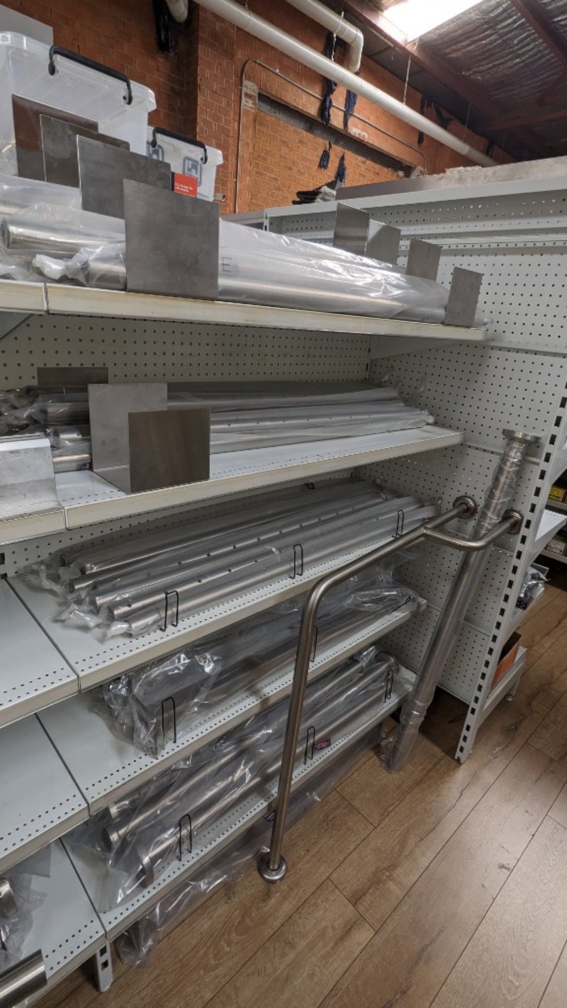 Comprehensive Stainless steel shelving components and hardware, including multiple rectangular balustraded panels in 316 marine-grade stainless steel, polished and more......
