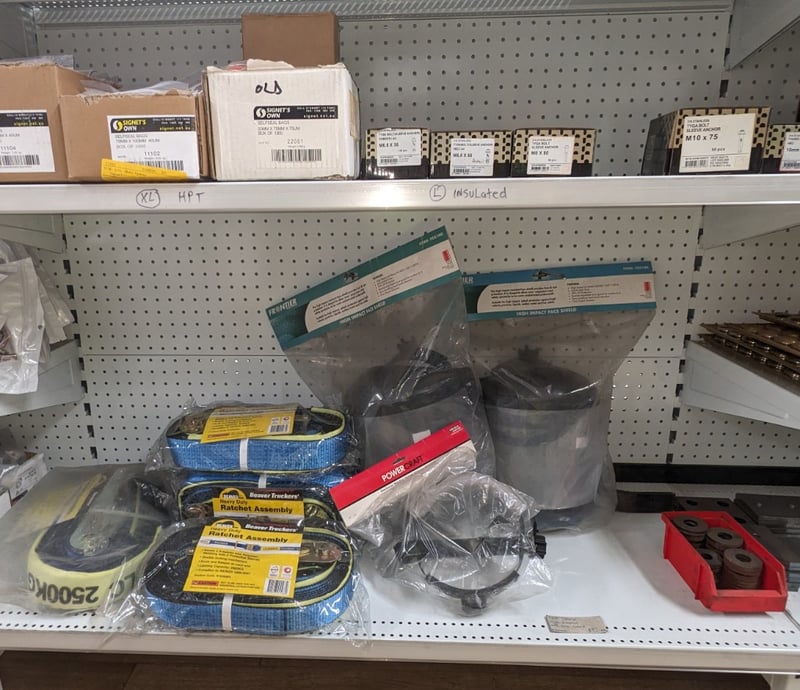 Assorted Safety & Welding Accessories – Face Shields, Ratchet Tie Downs, Welding Helmet Harnesses & Miscellaneous Items Sold as Lot Note: As Displayed