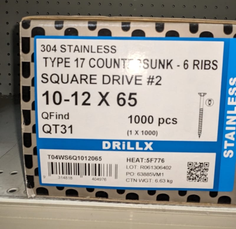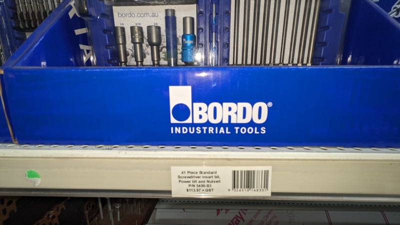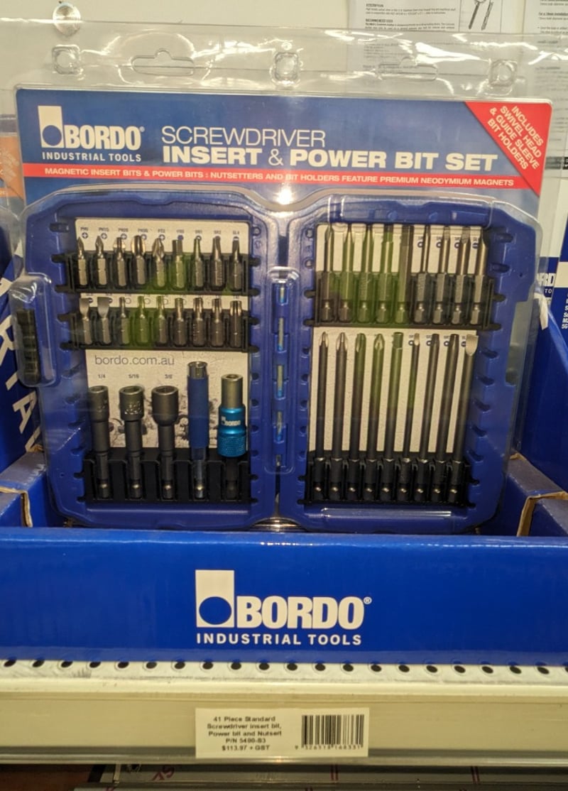 Comprehensive Lot of industrial fasteners and tools including Bordo 41-piece screwdriver insert and power bit set with magnetic nutsetter and bit holders featuring premium neodymium magnets, 304 stainless steel type 17 countersunk 6-ribs square drive #2 screws (10-12 x 65mm, 1000 pieces), and zinc-plated RoHS compliant cup head bolt and nut assembly (M10x30, 200 pieces) and more......