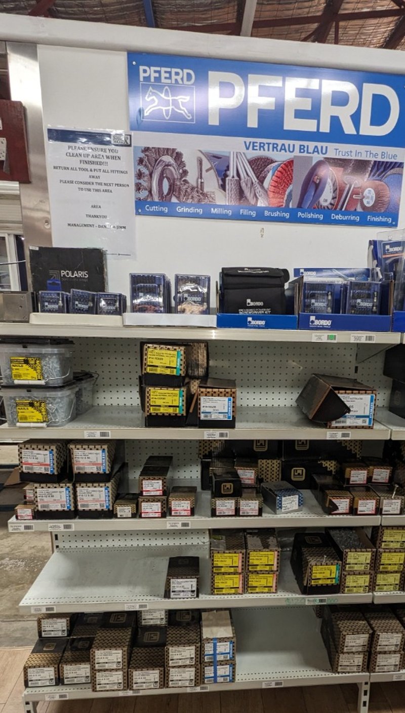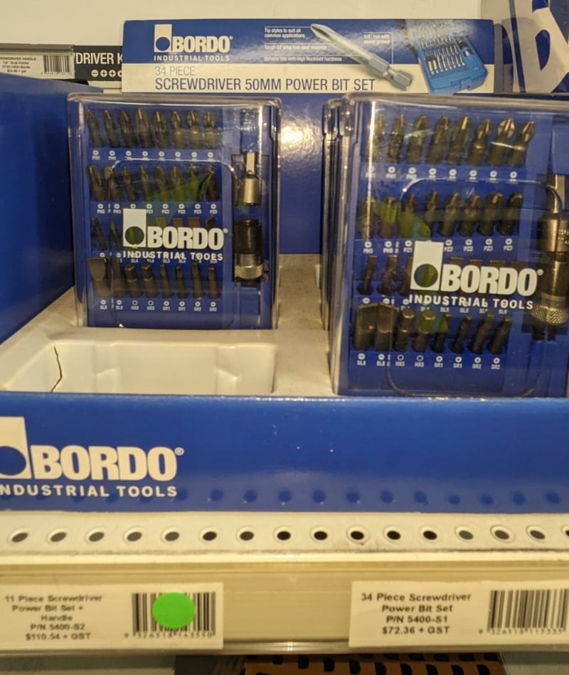 Comprehensive hardware and fastening tools lot featuring PFERD precision grinding and finishing equipment, BORDO Industrial Tools screwdriver kits (including 50mm power bit sets and pro-series kits in carrying cases), and HOBSON plain shank connector nails (30x2.8mm) and more ... Sold as Lot
