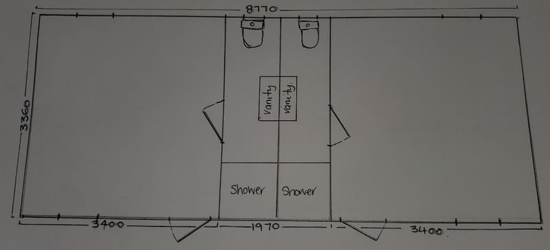 Dimensions for double block : Width 3360m - Length 8770m