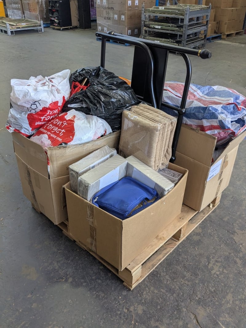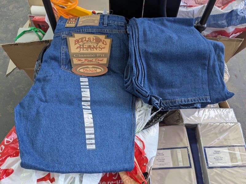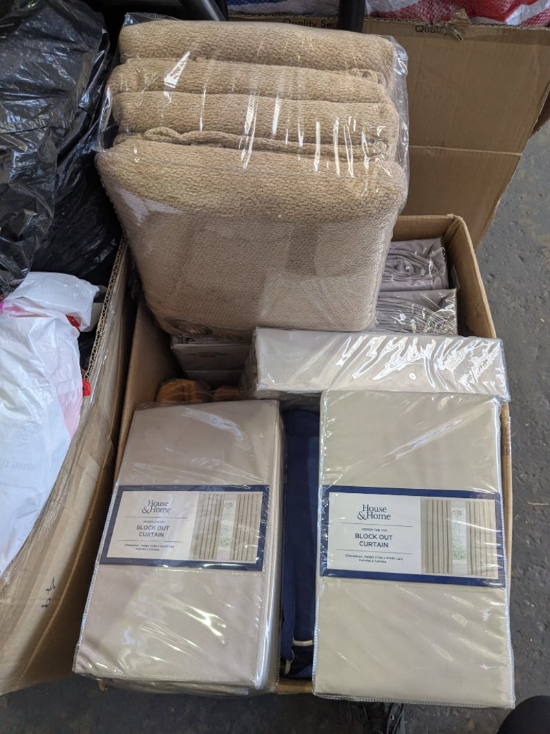 Homewares pallet, including pairs of mens jeans various sizes, block out curtains and more