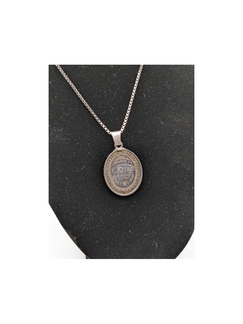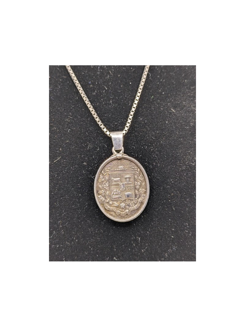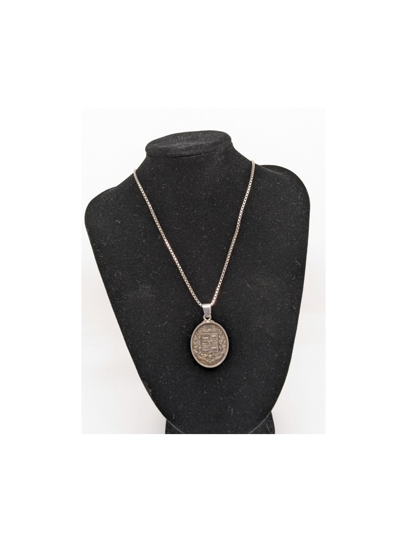 Necklace/ pendant, silver '925' stamped box chain necklace with engraved pendant, 19.1grams