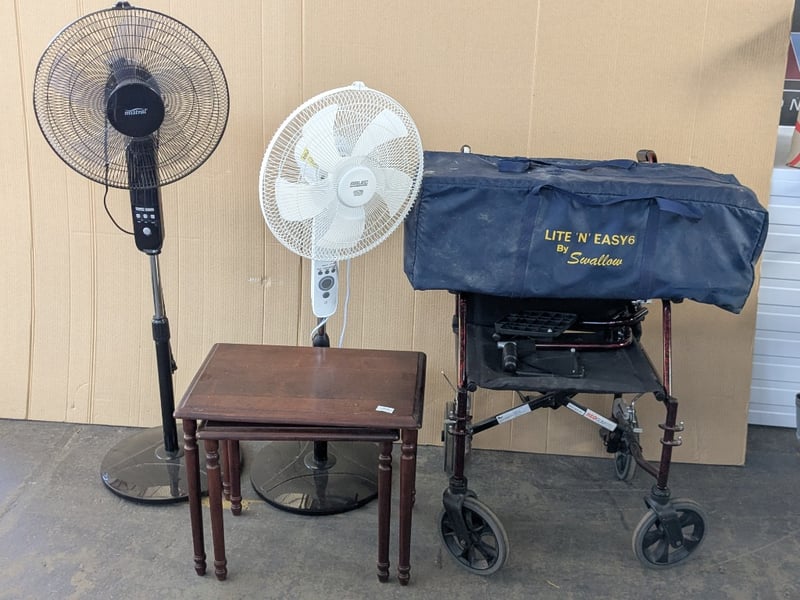 Homewares, including wheel chair, 2 x pedestal fans and more