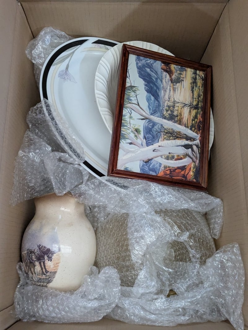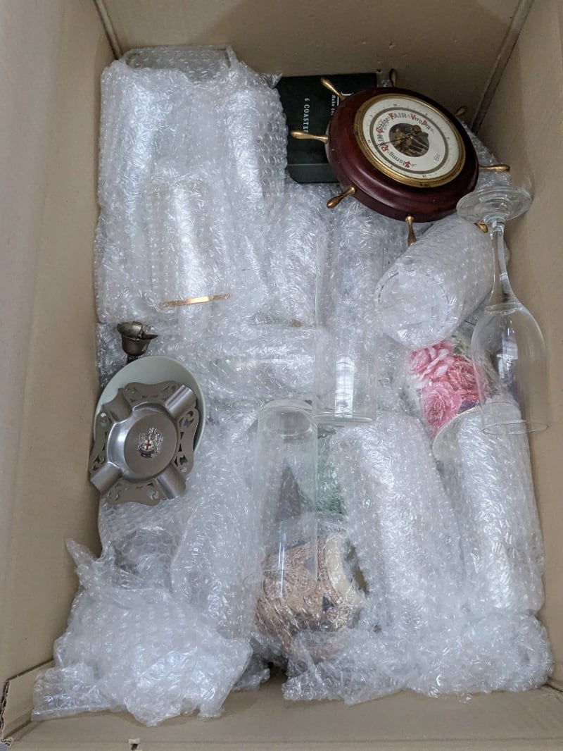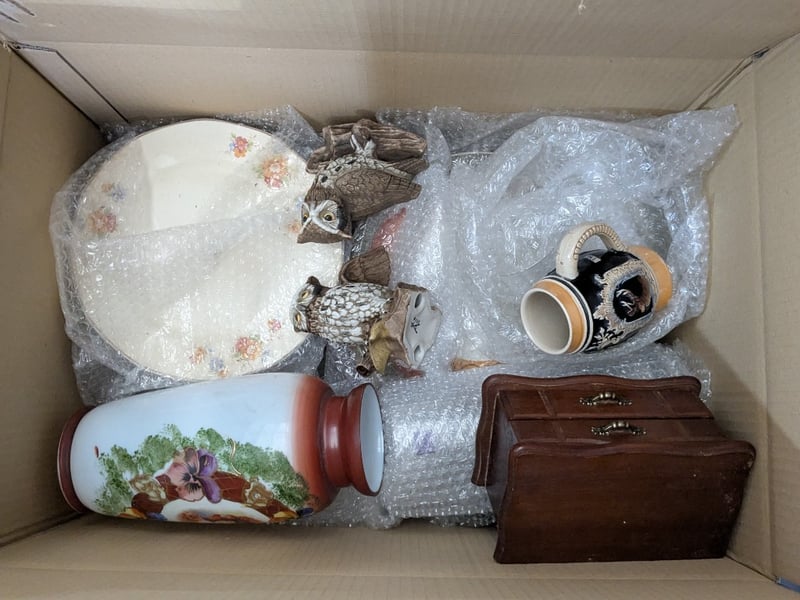 Homewares, 6 boxes including ornaments, glassware, vases and more
