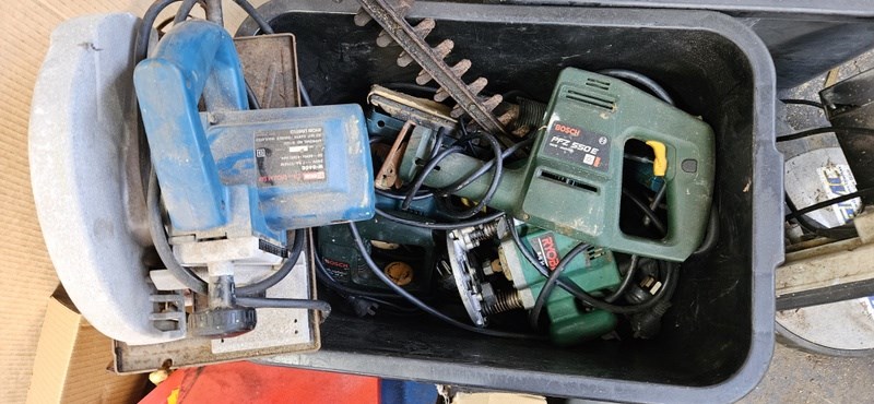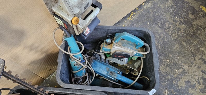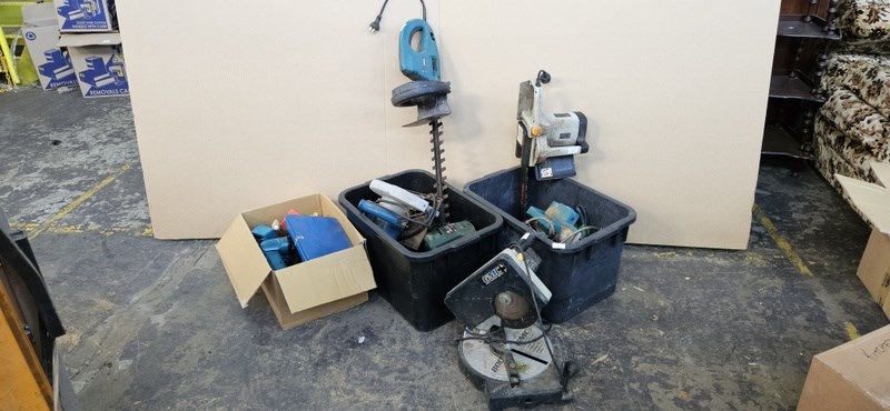 Hand/Power Tools, assorted tools including angle grinders, chain saw, makita torch and more.