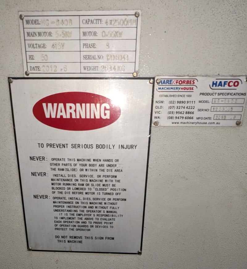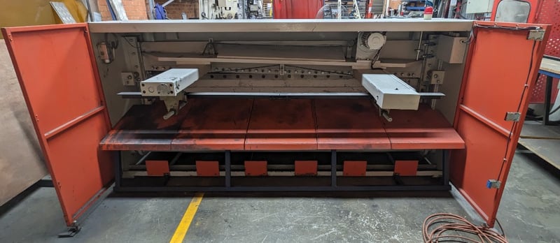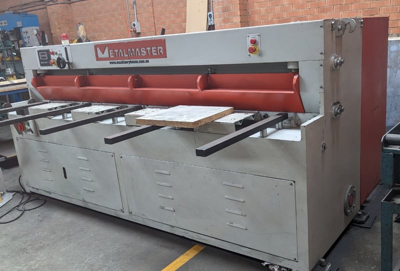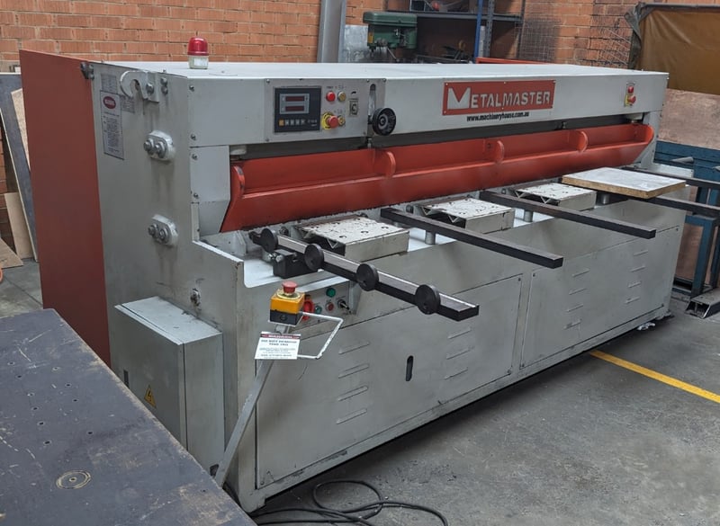 Metalmaster Hydraulic guillotine. Model: HG - 840B Serial number: 1206043 Dimensions: 312cm L, 220cm W, 138cm H Note: Signs of wear and tear, untested