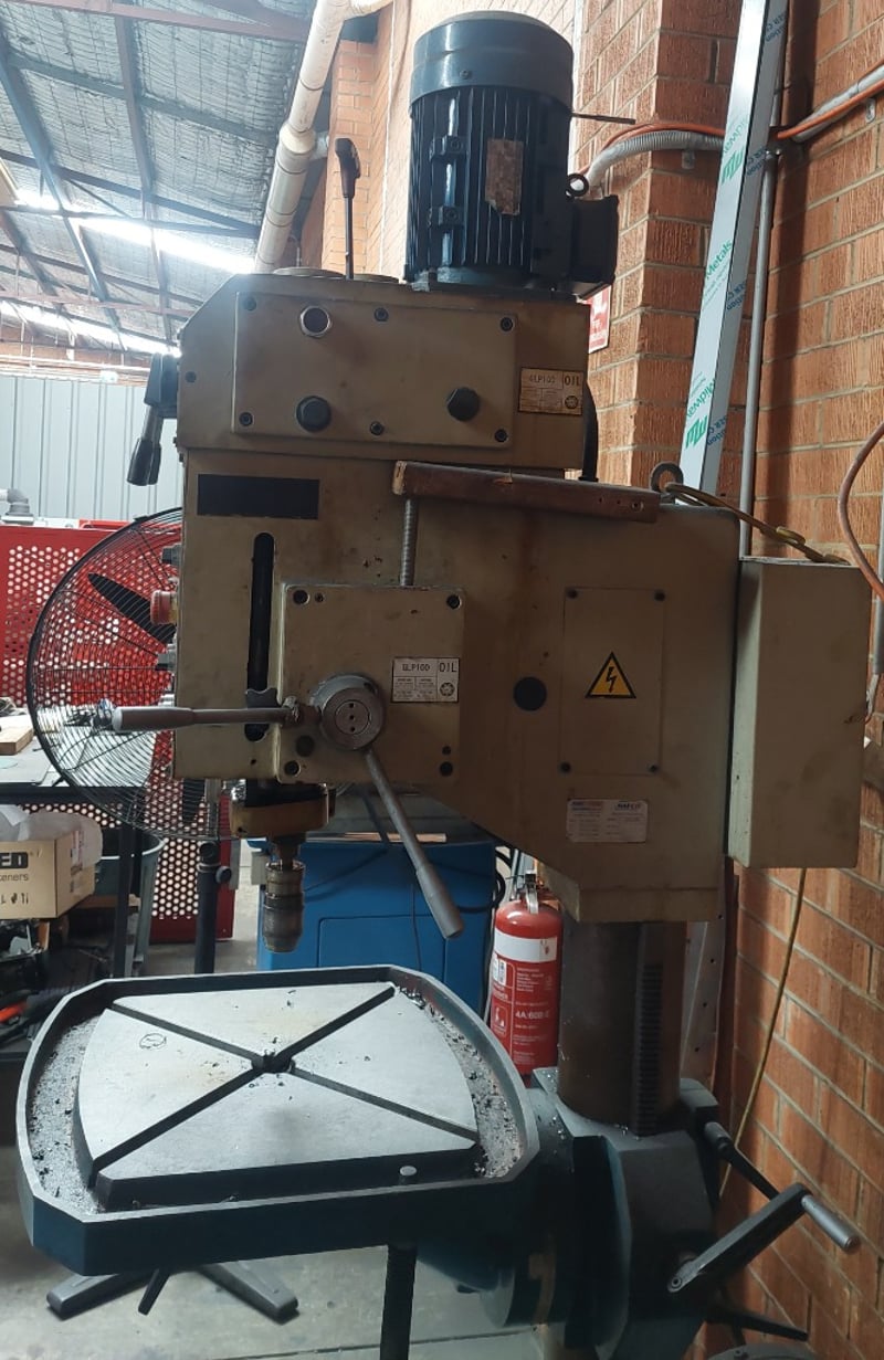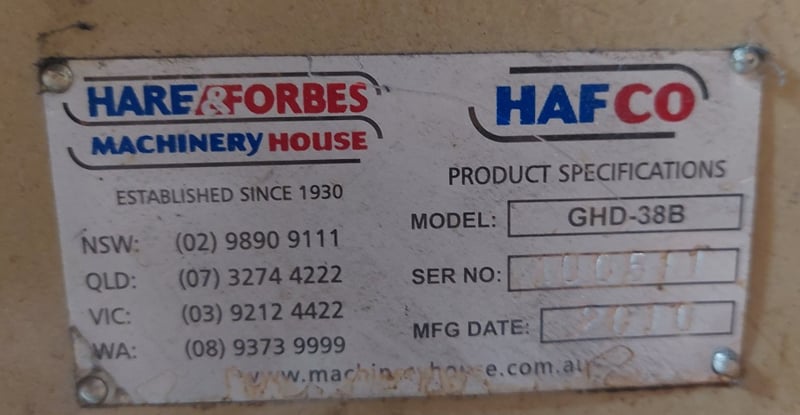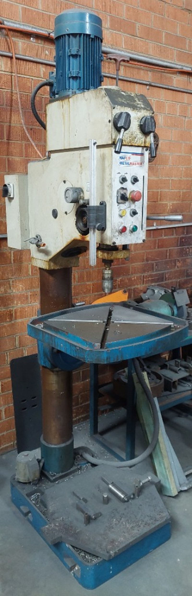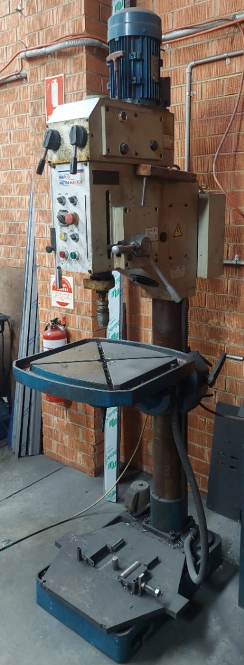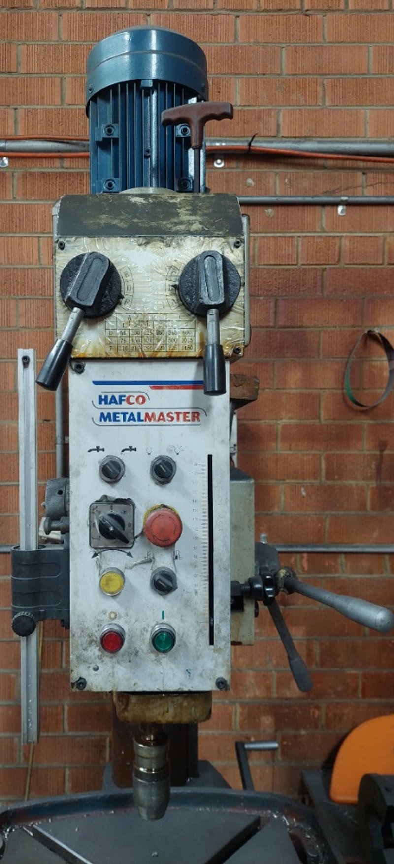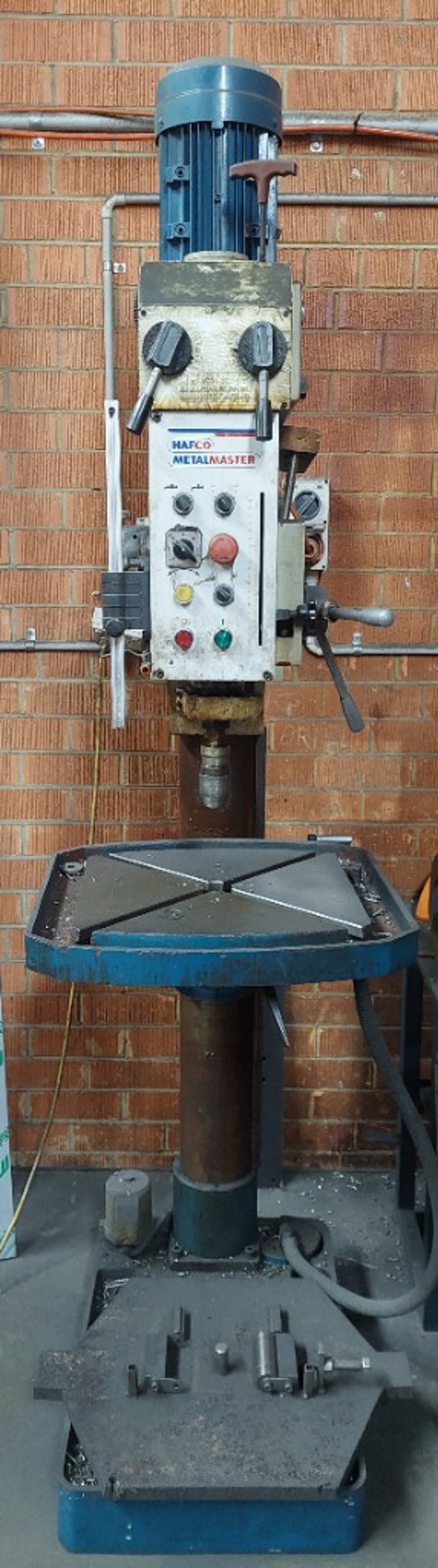 Hafco Metalmaster column drilling machine. Model: GHD-38B Serial number: 100511 Dimensions: 60cm L, 90cm W, 226cmH Note: item is untested, signs of wear.
