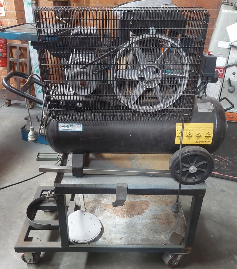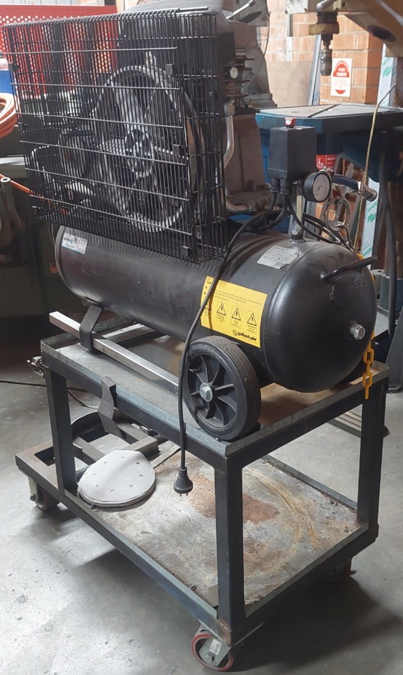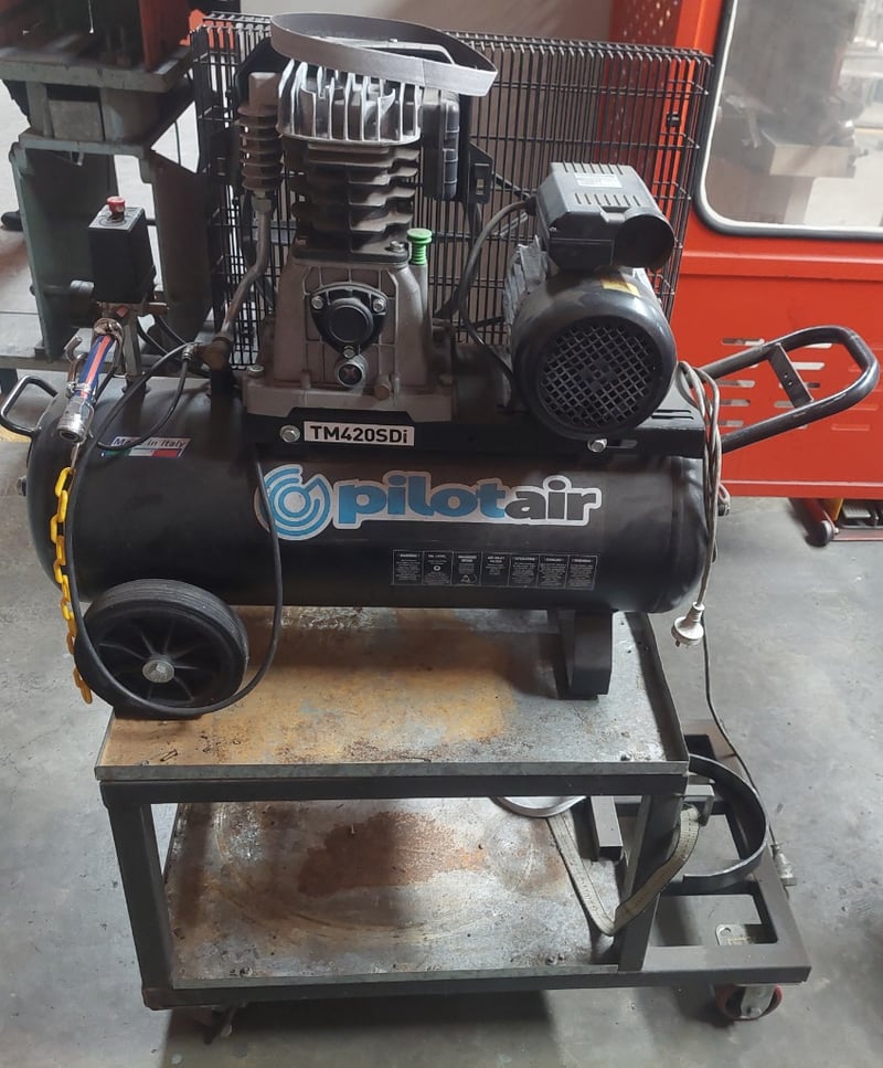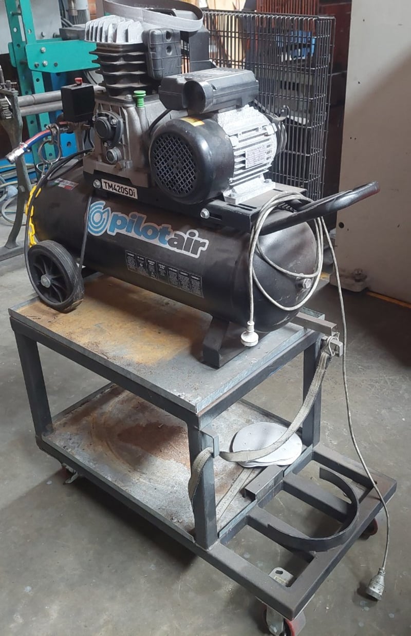 Pilot Air TM420SDi piston air compressor on a mobile trolley.