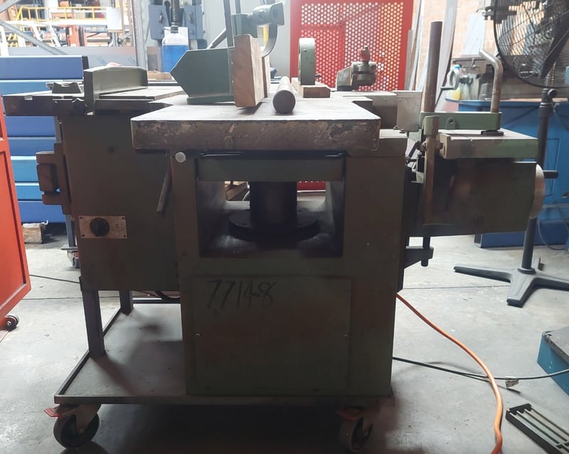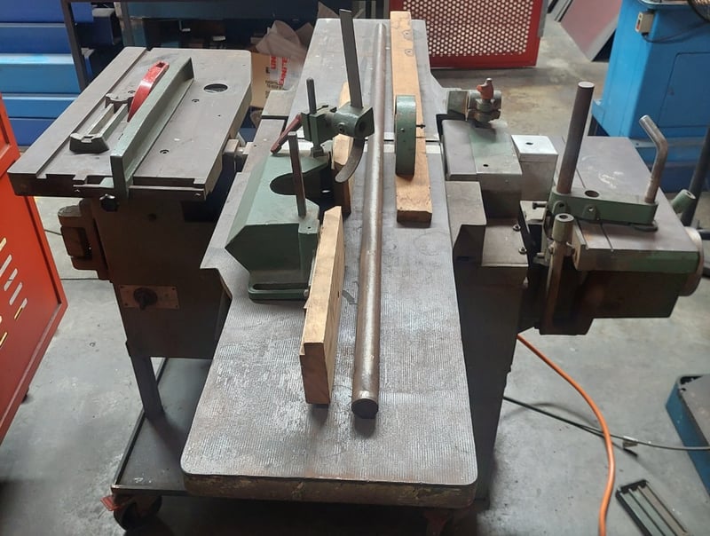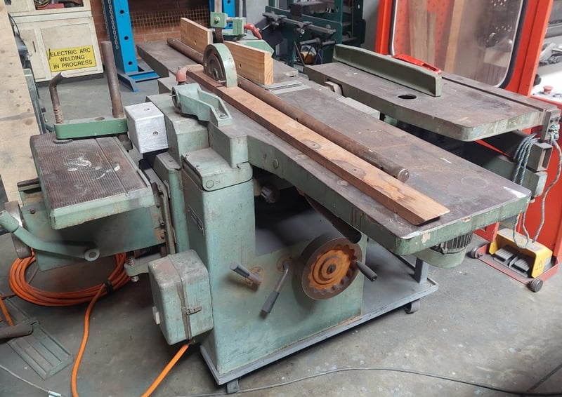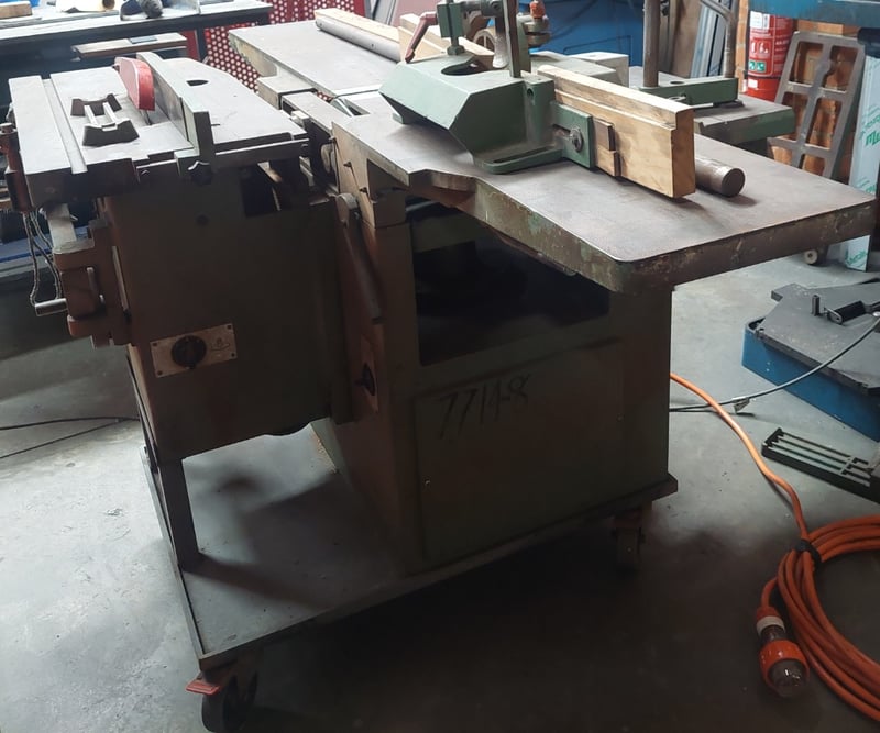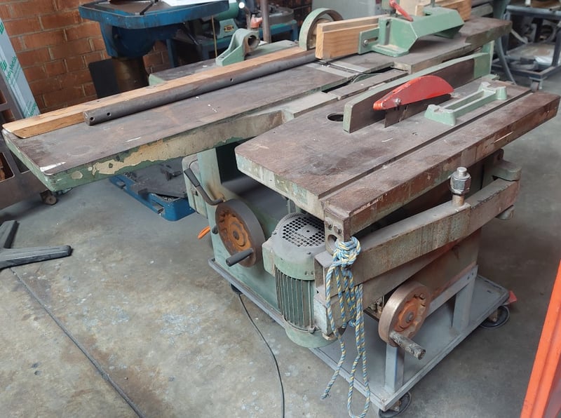 Combination woodworking machine, featuring functionalities such as planing, thicknessing, sawing. Dimensions: 182cm L, 150cm W, 130cm H Note: item is untested, signs of wear