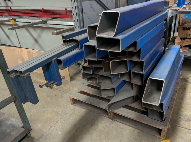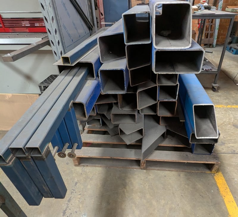 Assorted square Hollow Section (SHS) and Rectangular Hollow Section (RHS) steel tubes. Dimensions: 200cm L, 15cm H, 15cm W Note: Signs of wear, untested