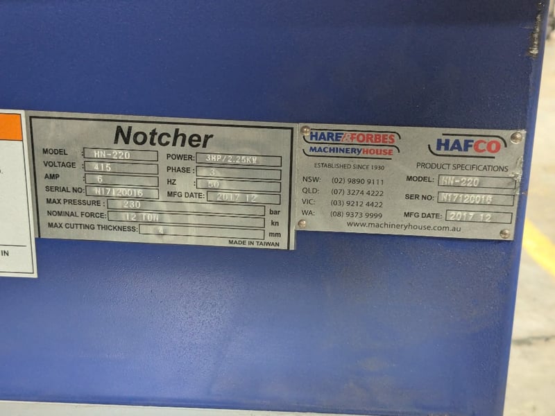Hafco Metalmaster Hydraulic Sheet Metal Notcher.