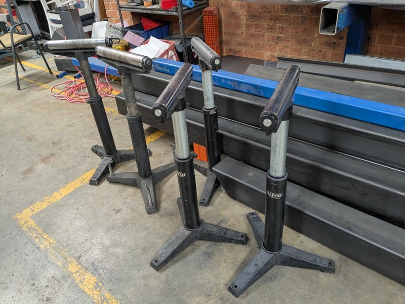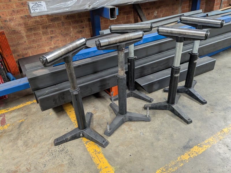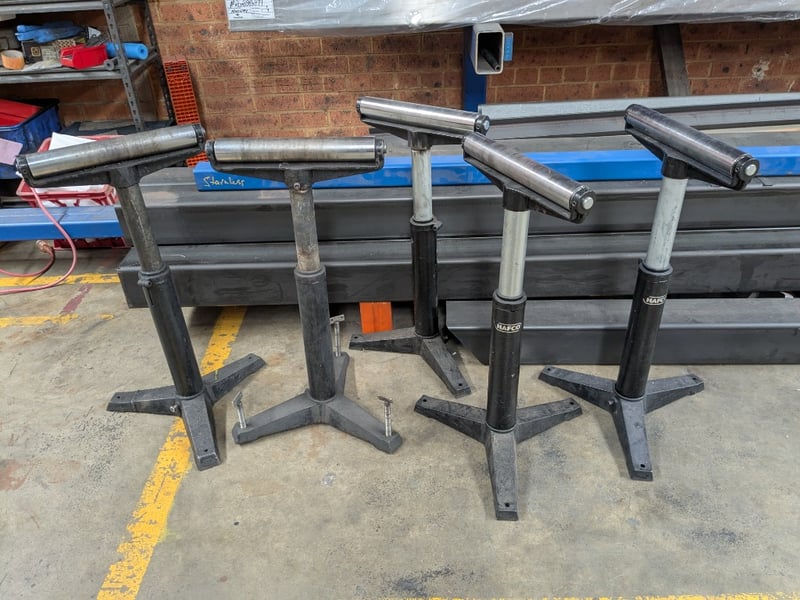 HAFCO RSH-970 Roller Stand. Dimensions: 80cm H, 40cm L, 30cm WQuantity: 5 per lot.Note: Signs of wear and tear