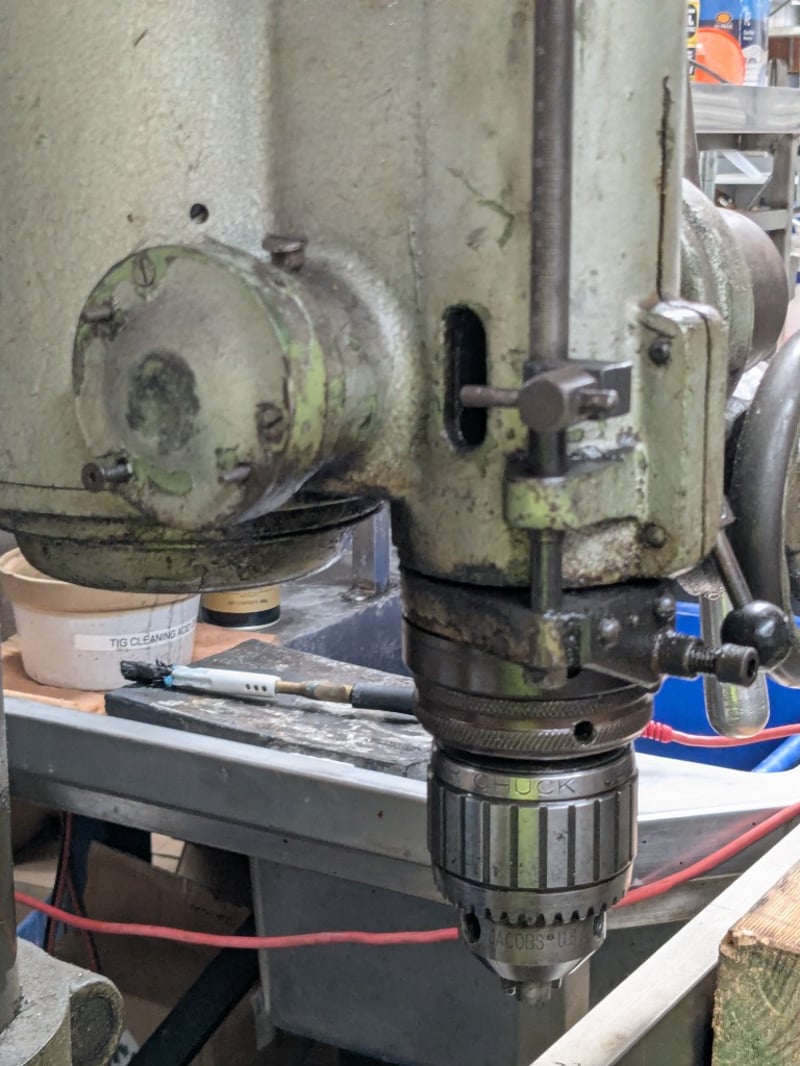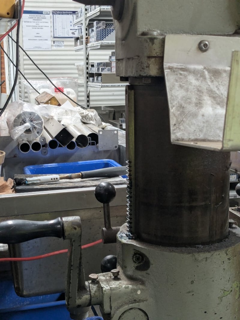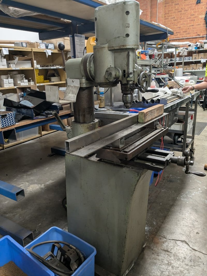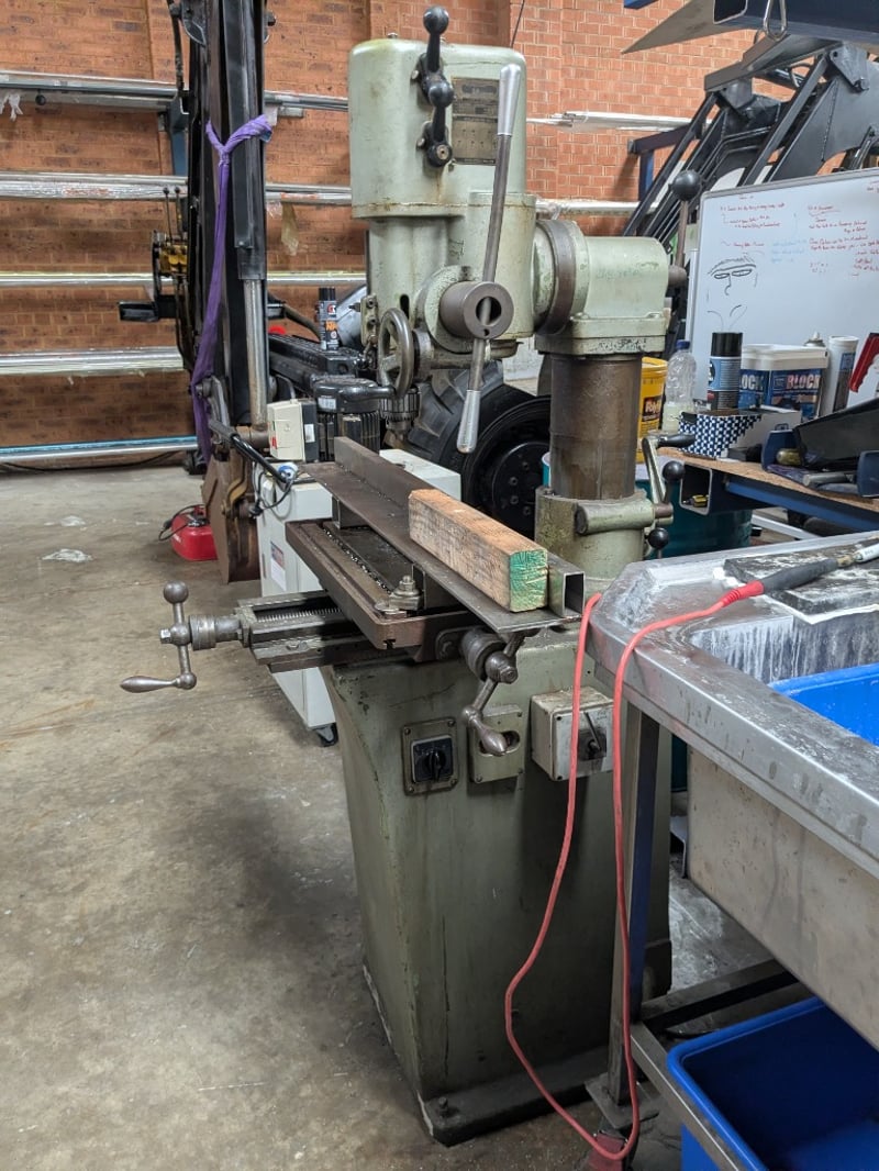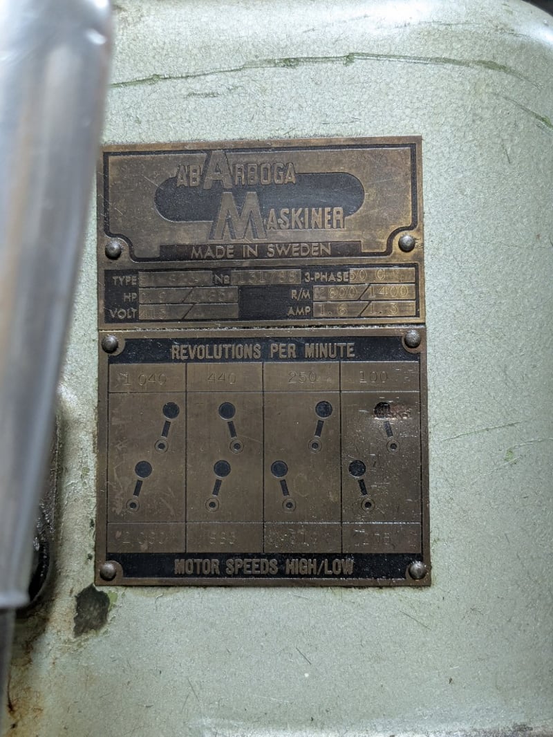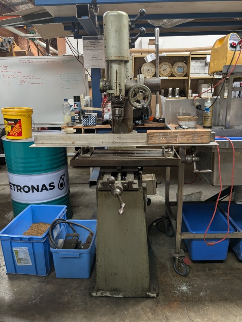 Arboga pillar drilling and milling machine. Model: ET825 Dimensions: 160cm H, 100cm L, 80cm W Note: Signs of wear and tear, untested