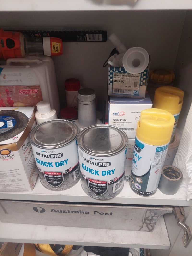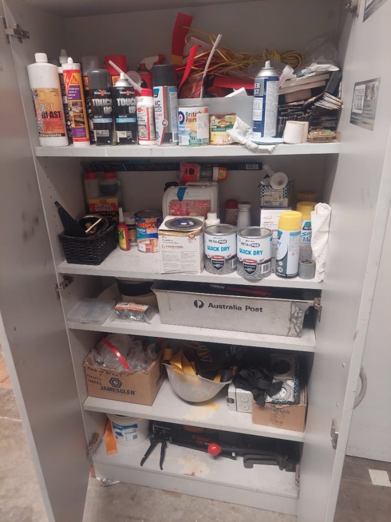 Comprehensive lot, Metal Cabinet,Metal pro quick dry, Paslode nails and more.....