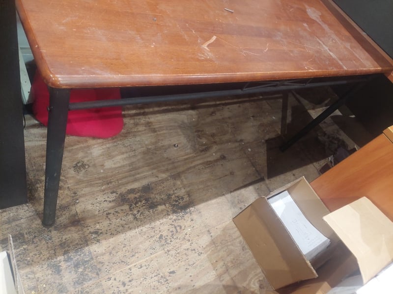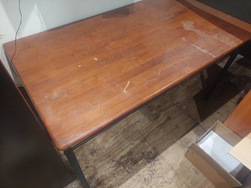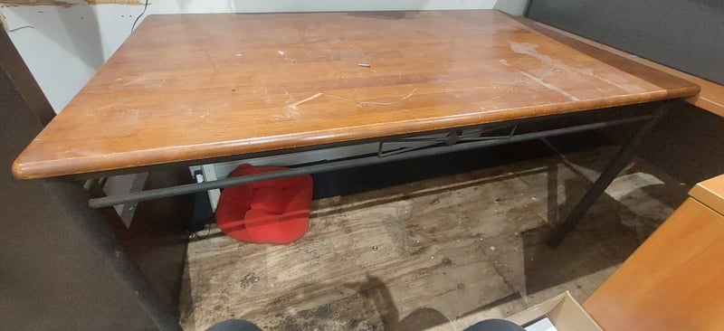 Dining Table wood surface steel frame Note: Signs Of Wear