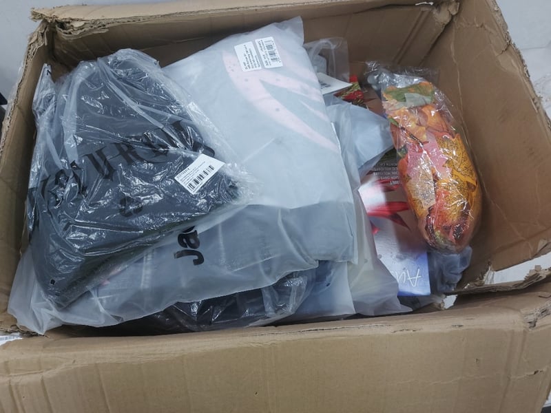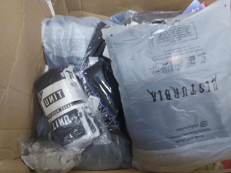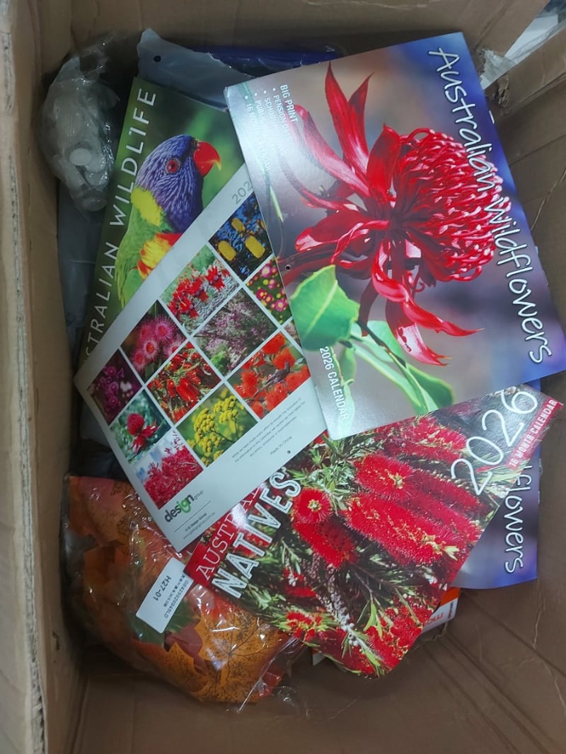Box of assorted items, including clothing, calenders and more SOLD AS LOT