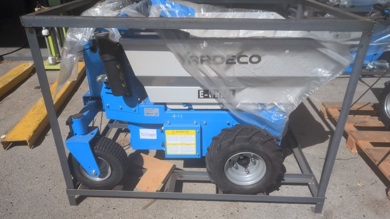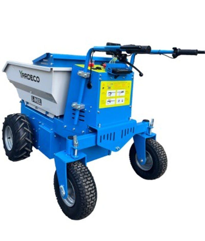 RRP $4650 Yardeco Mini Dumper PW51000HThe PW51000H is a compact, easily manoeuvrable battery powered wheelbarrow which can carry up to 500kg featuring hydraulic tipping for ease of use. Perfect for construction projects in limited spaces with a max speed of 6.5kh/h and a 48V 20Ah Lead acid battery with up to 8 hours working time per charge. SpecificationEngine: Brushless DC Motor 1000WBatteries: 48V 20Ah Lead-acidCapacity: 500kgWheel/Track size: Front 6.50-8 Rear 5.00-6Forward Speed: 1: 2.5km/h 2: 5.3km/h 3:6.5km/hReverse Speed: 2.0km/hWorking Time: 6-8 hoursCharge Time: 8 hoursTipping: HydraulicN.W/G.W: 250kg/280kg