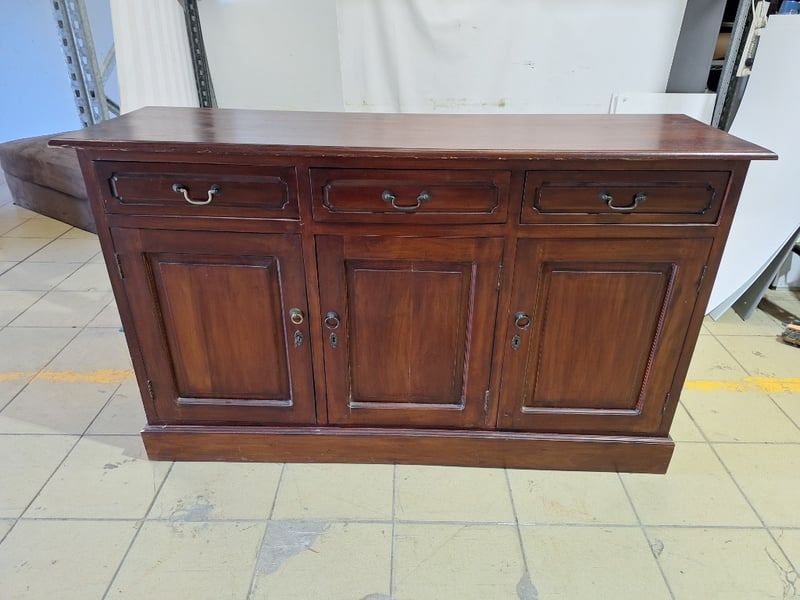 Hall Table, Key Included, Timber Style, Brown Finish Dimensions H:90cm W:150cm D:45cm