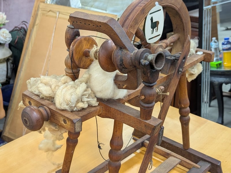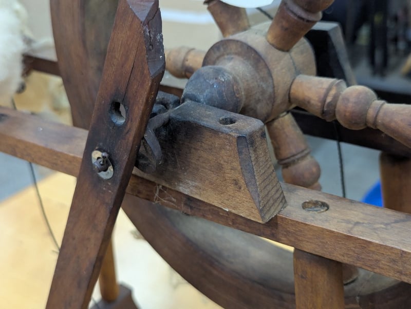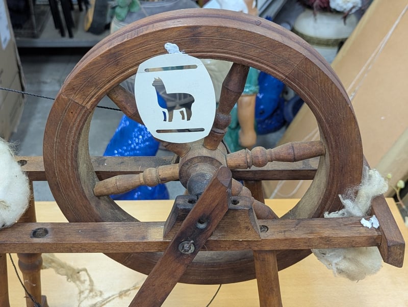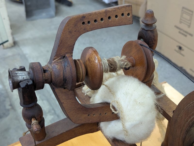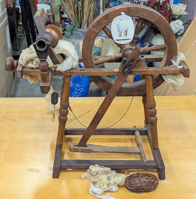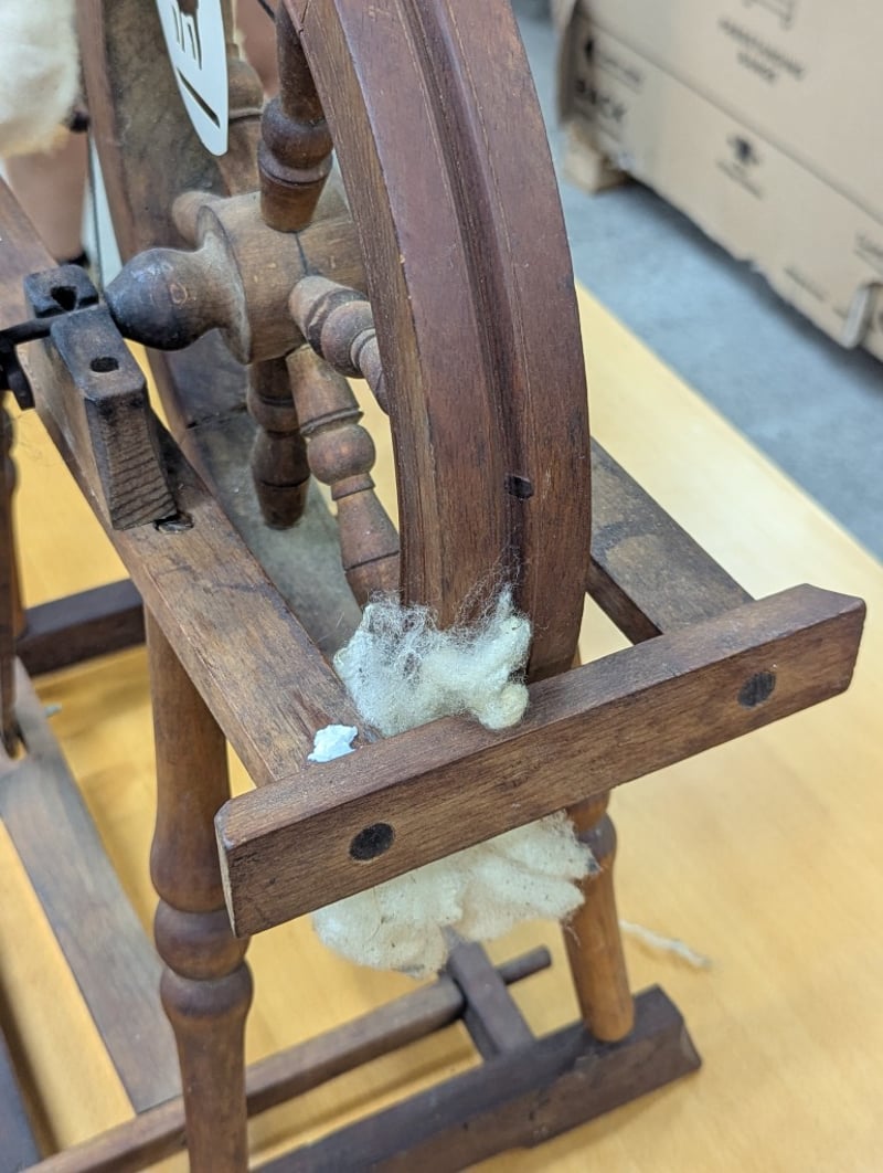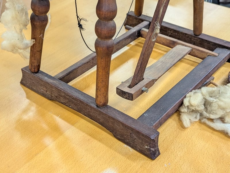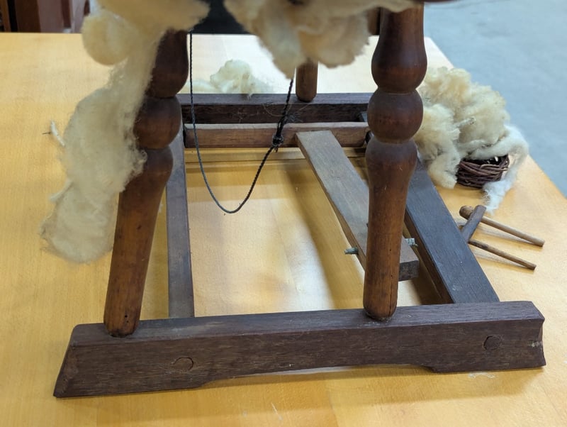 Timber loom, includes wool, unknown working condition, dimensions: 58cm h x 37cm w x 61cm d