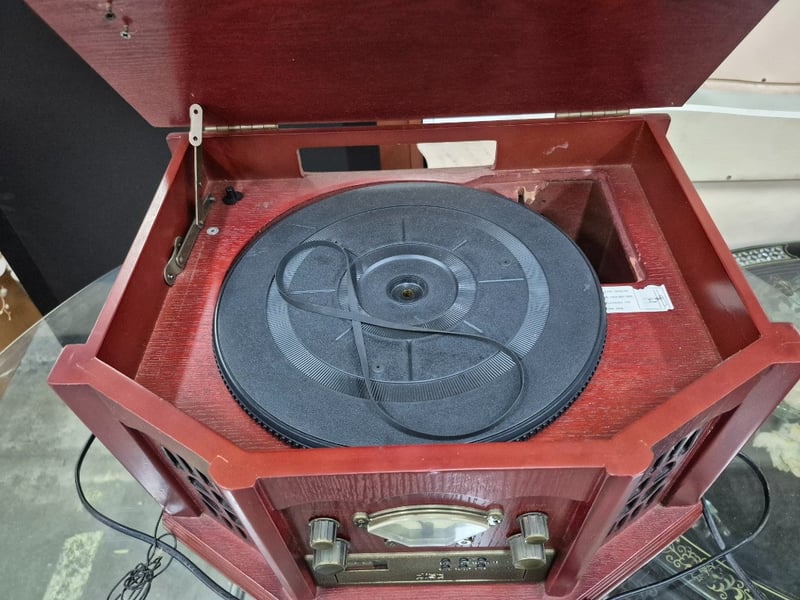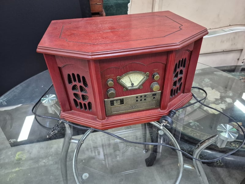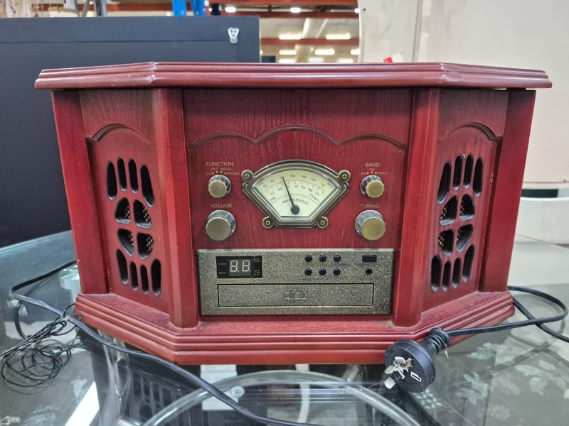 CD Player and Radio, Timber style, Dimensions: H 45cm x W 45cm x D 40cm