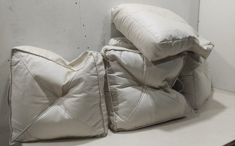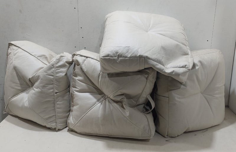Cream-coloured quilted cushions/pillows in various sizes, fabric ,square