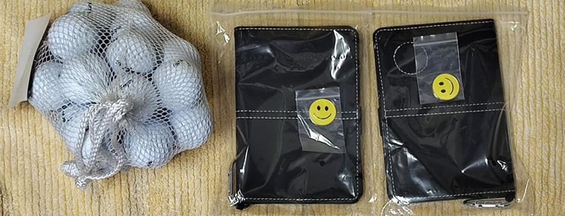 Golf Bundle - 23 Brand New Golf Balls, 2 Brand new golf Card Holders, 2 Brand new Gold ball Markers