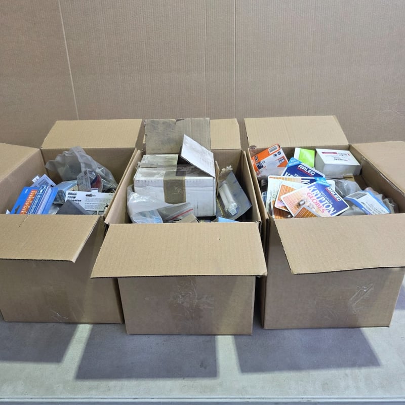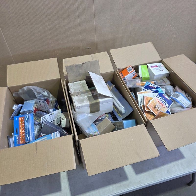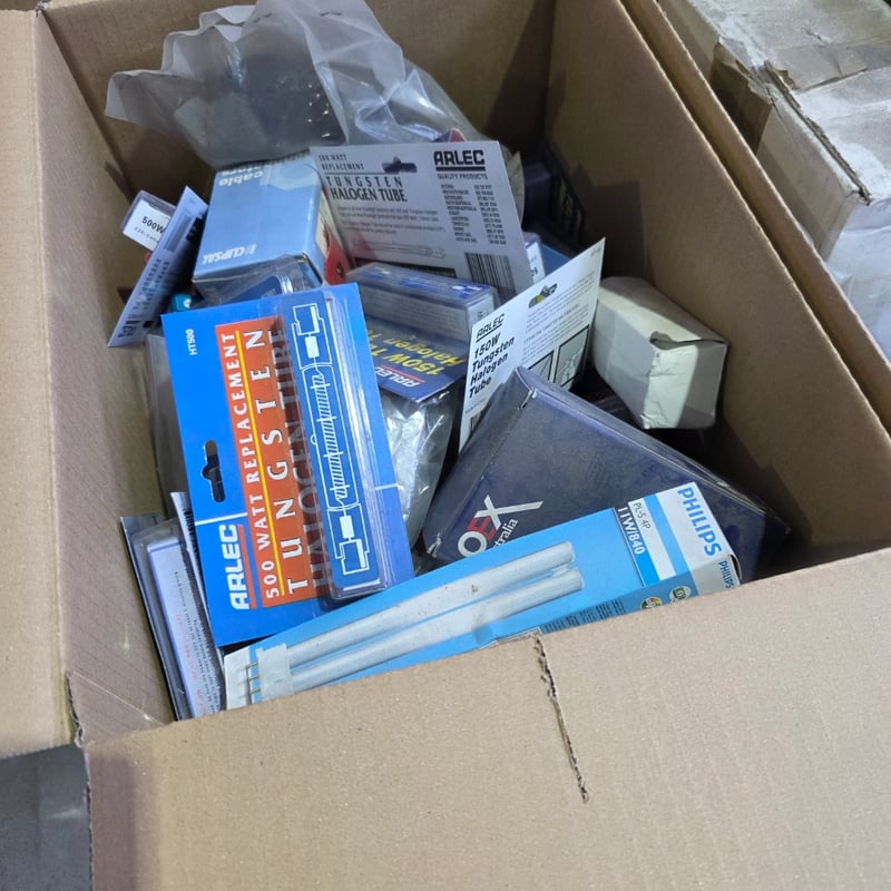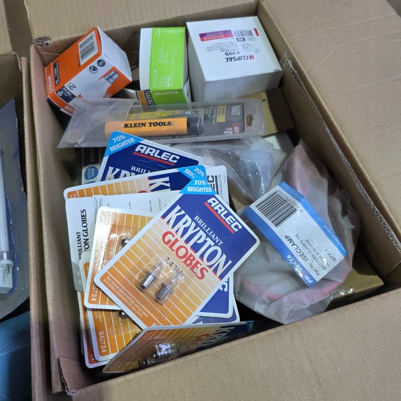 Electrical, includes various globes, halogen lights and hardware Sold as lot